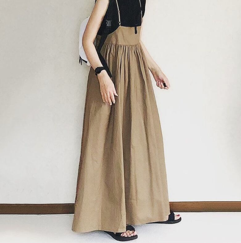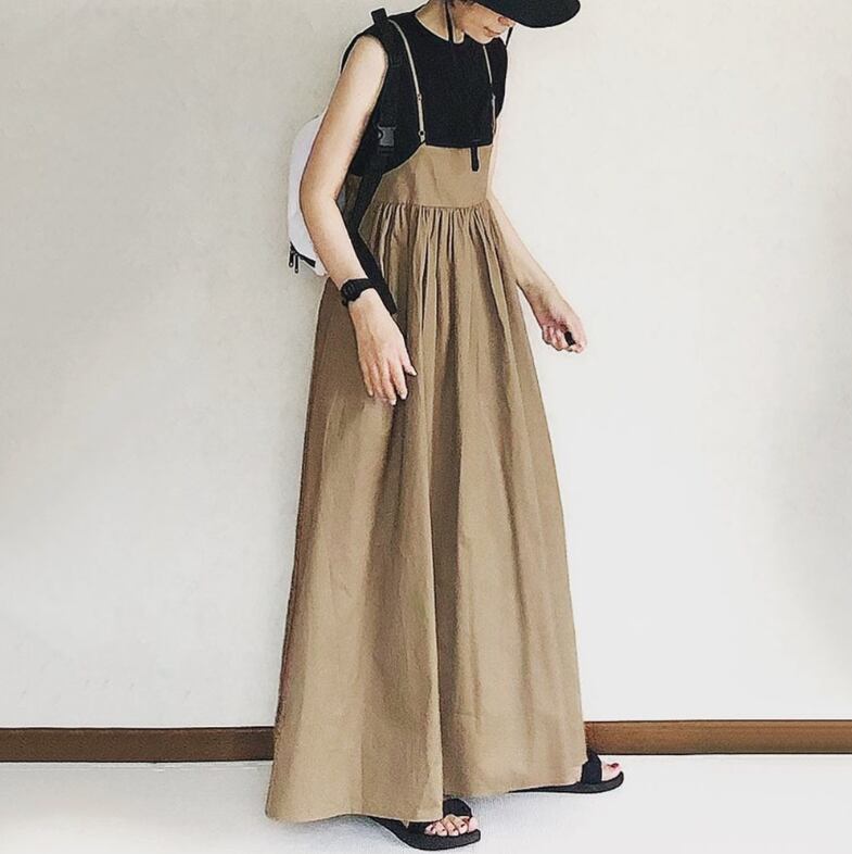 レディース スカート オールインワン ドレス つなぎ サスペンダー ロング 袖なし ノースリーブ 襟なし Aライン ハイウエスト コットン かわいい 大人可愛い きれいめ シンプル カジュアル 上品 おしゃれ こなれ感 ラフ 抜け感 ナチュラル 無地 春 夏 デート お出かけ お泊まり パーティー イベント リゾート 旅行 公園 女子会 休日 ショッピング 韓国 コーデ 楽ちん プレゼント 体型カバー 普段使い 着回し モテ 清楚 トレンド 流行 インスタ映え 定番 黒 グレー カーキ ブルー 緑