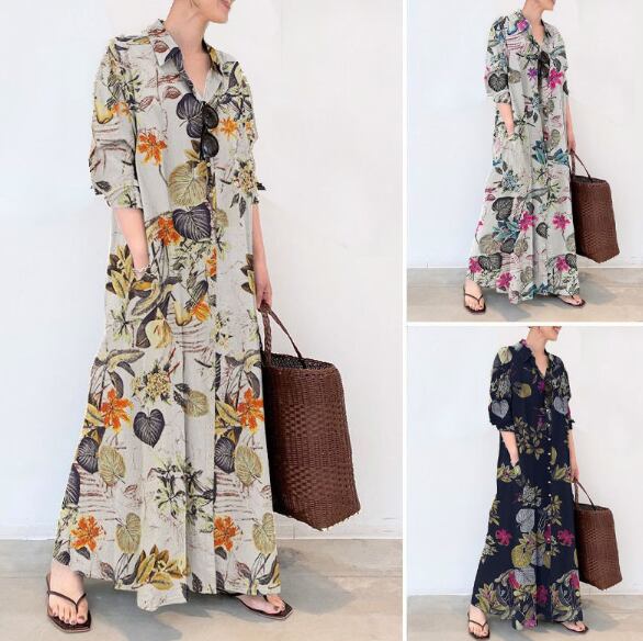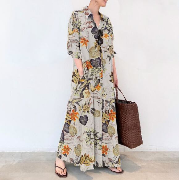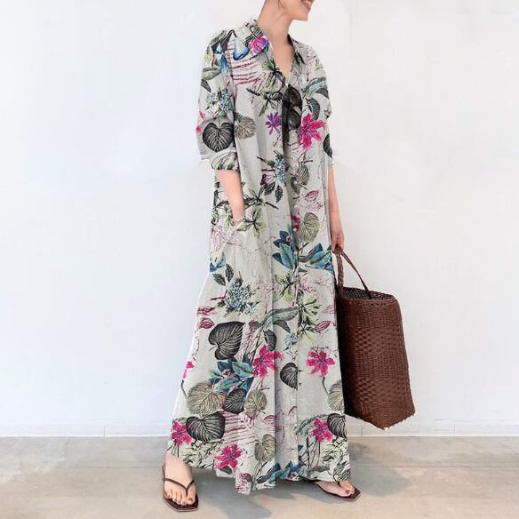 シャツワンピース レディース ワンピース ロング マキシ フルレングス 半袖 襟付き Aライン ゆったり 前開き コットン ポリエステル シンプル こなれ感 ラフ ナチュラル 花柄 フラワー 春 夏 マタニティ デート お出かけ お泊まり リゾート 旅行 海 プール ビーチ 公園 アースカラー コーデ 楽ちん 体型カバー 脚長 ブラック ベージュ ブラック ベーシックカラー S M L XL 2XL 3XL 4XL 5XL