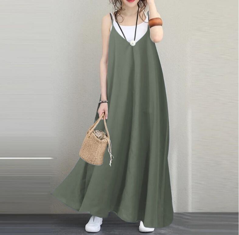 ワンピース レディース キャミワンピ 膝下 ロング ノースリーブ Vネック ワイド フレア バックシャン 大人可愛い シンプル カジュアル 上品 おしゃれ こなれ感 ラフ ルーズ 存在感 抜け感 キュート 都会的 ベーシック ナチュラル 無地 春 夏 ママ お出かけ 旅行 女子会 休日 ショッピング アースカラー 重ね着 コーデ 楽ちん 体型カバー 普段使い 着回し 定番 S M L XL 2XL 3XL 4XL 5XL 黒 ブラック アプリコット ライトグリーン ブルー 定番カラー