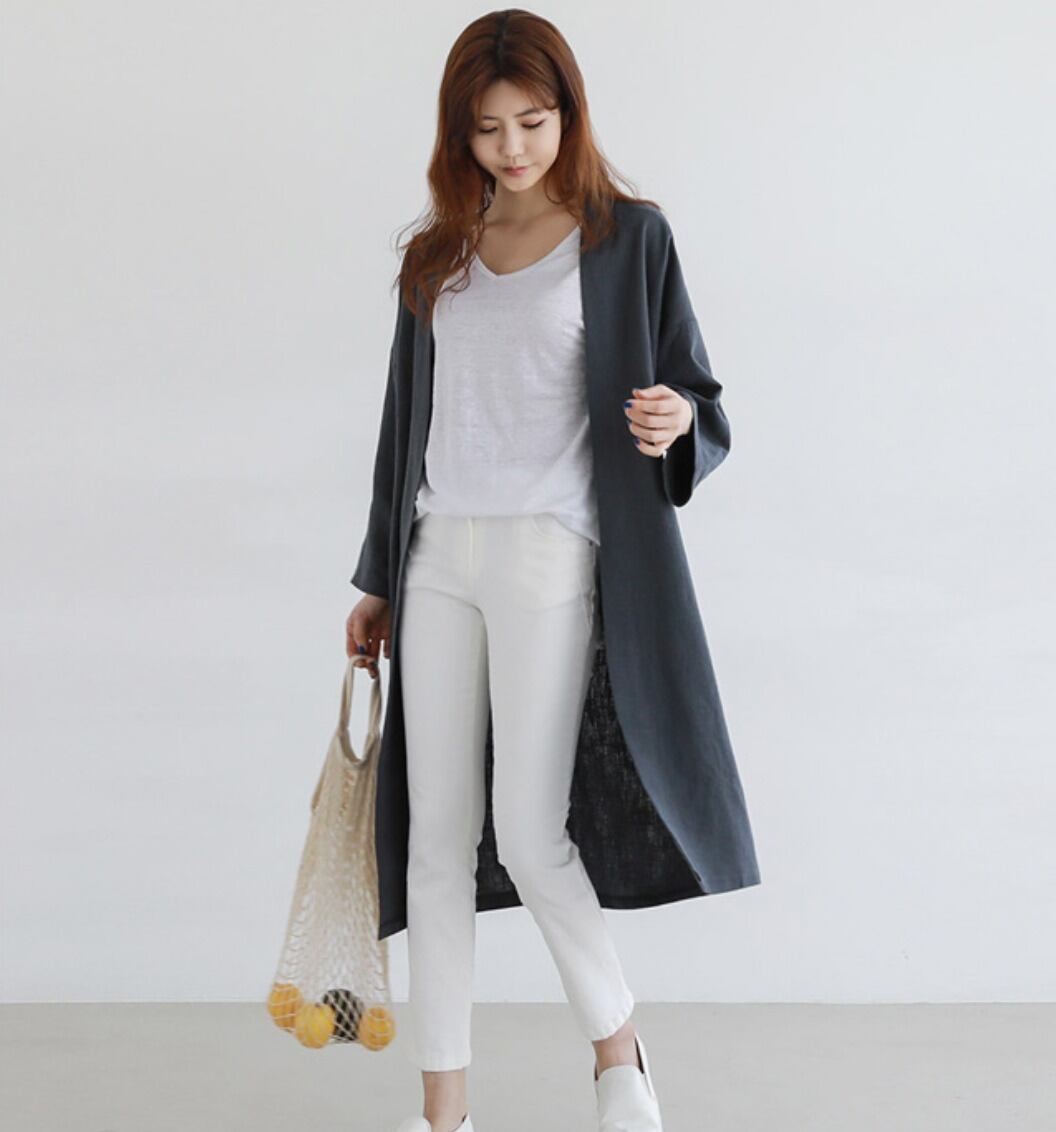 前開き仕様と長袖のスタイルが、都会的でエレガントな印象を与えます。