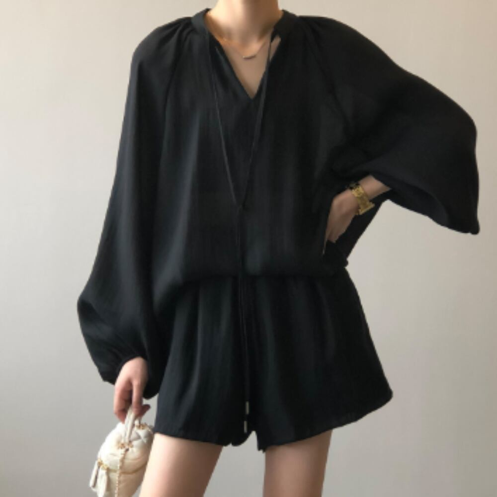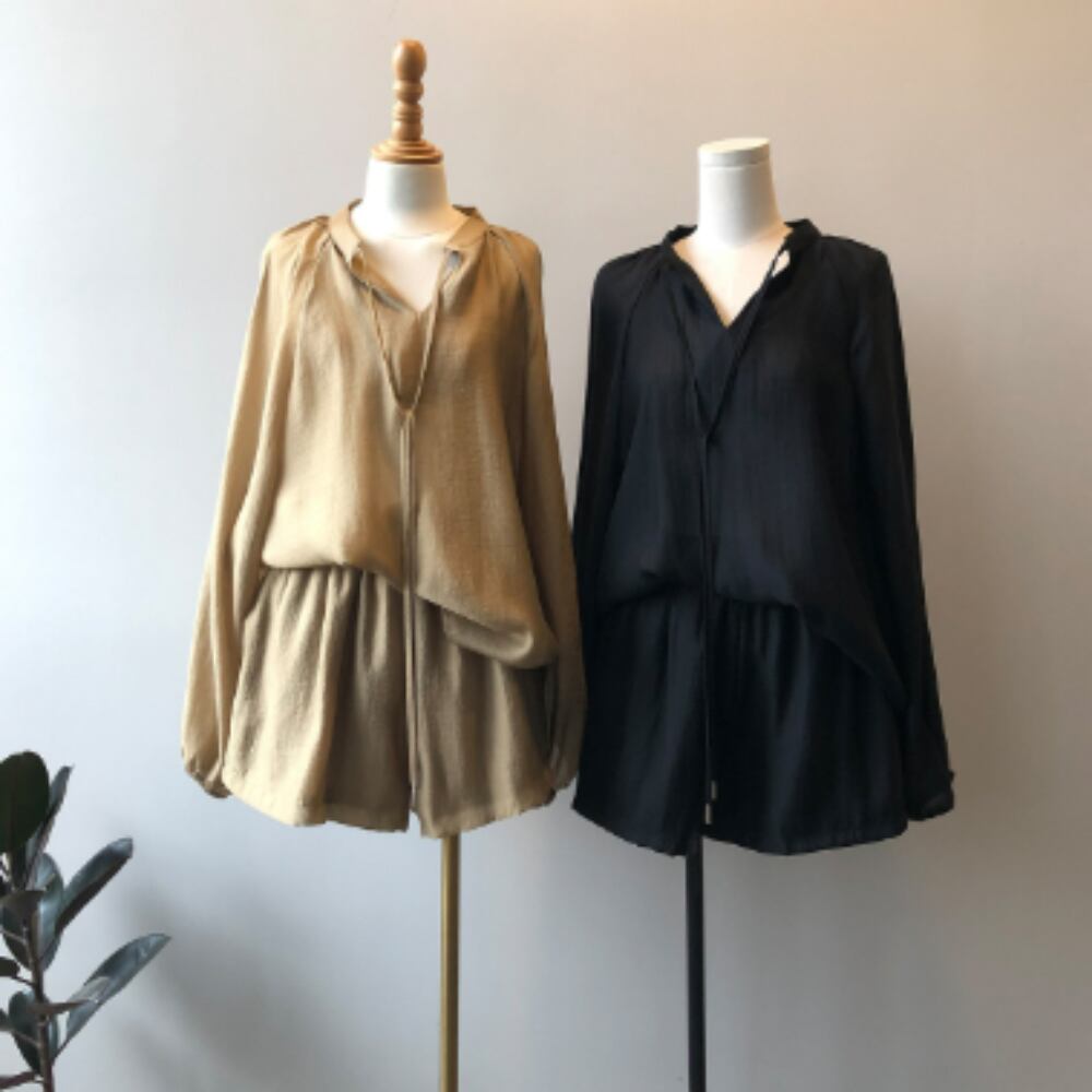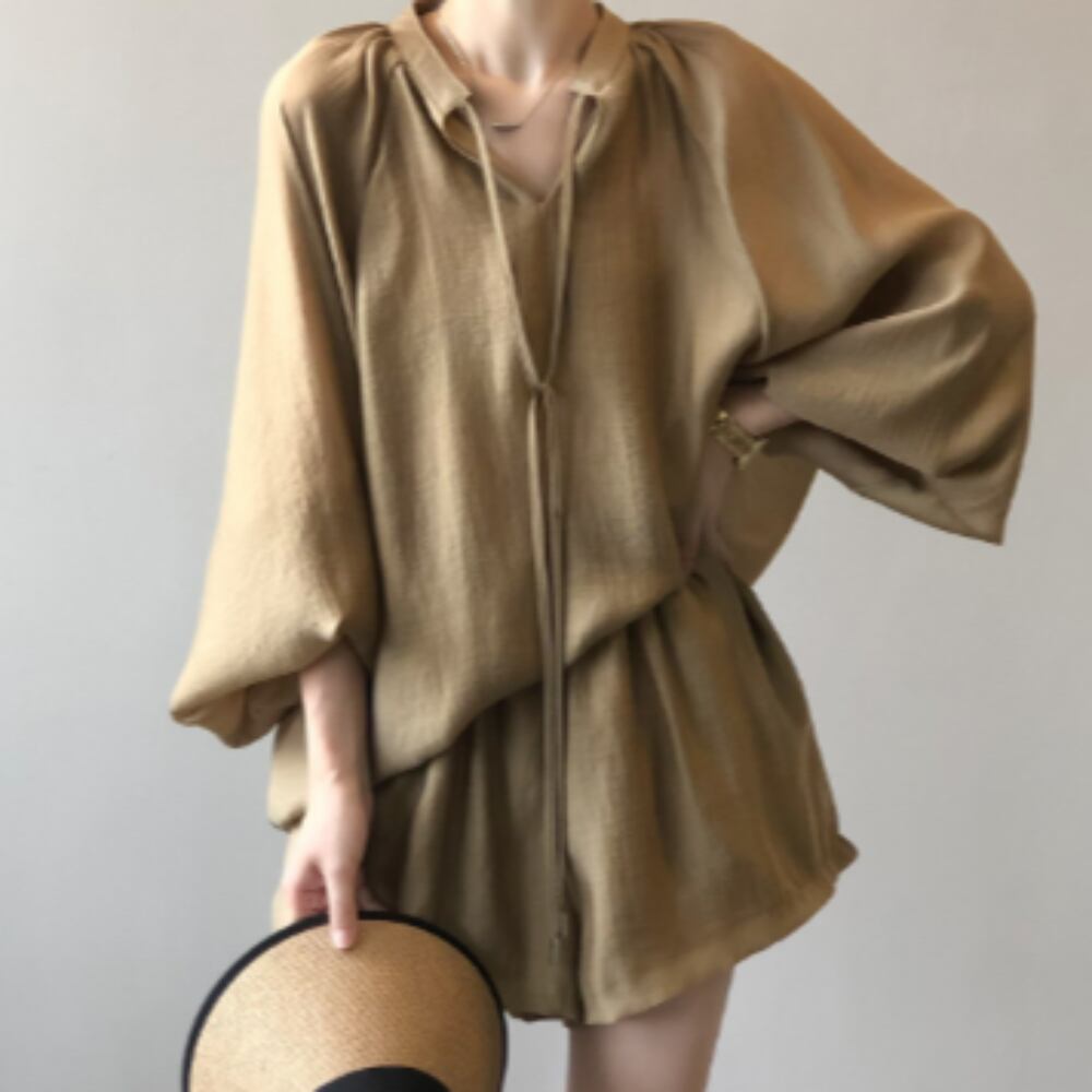こちらの上下セットは、春や秋の季節にぴったりな大人可愛いデザインのセットアップです。襟付きの長袖ブラウスとミニ丈のショートパンツが組み合わさり、カジュアルながら上品さを兼ね備えています。ハイウエストのショートパンツは、脚長効果をもたらし、無地のシンプルなスタイルは様々なシーンで着回し可能です。通学やデート、女子会、休日のお出かけなど、幅広いシーンで活躍すること間違いなしです!