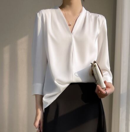 こちらのシフォンシャツブラウスは、オールシーズンにぴったりのミディアム丈・長袖デザインが特徴です。Vネックデザインとボタンのディテールが大人可愛い印象を与え、シンプルながらも存在感があります。カジュアルからきれいめまで幅広いシーンで活躍し、通勤やデート、休日のお出かけにも最適です!