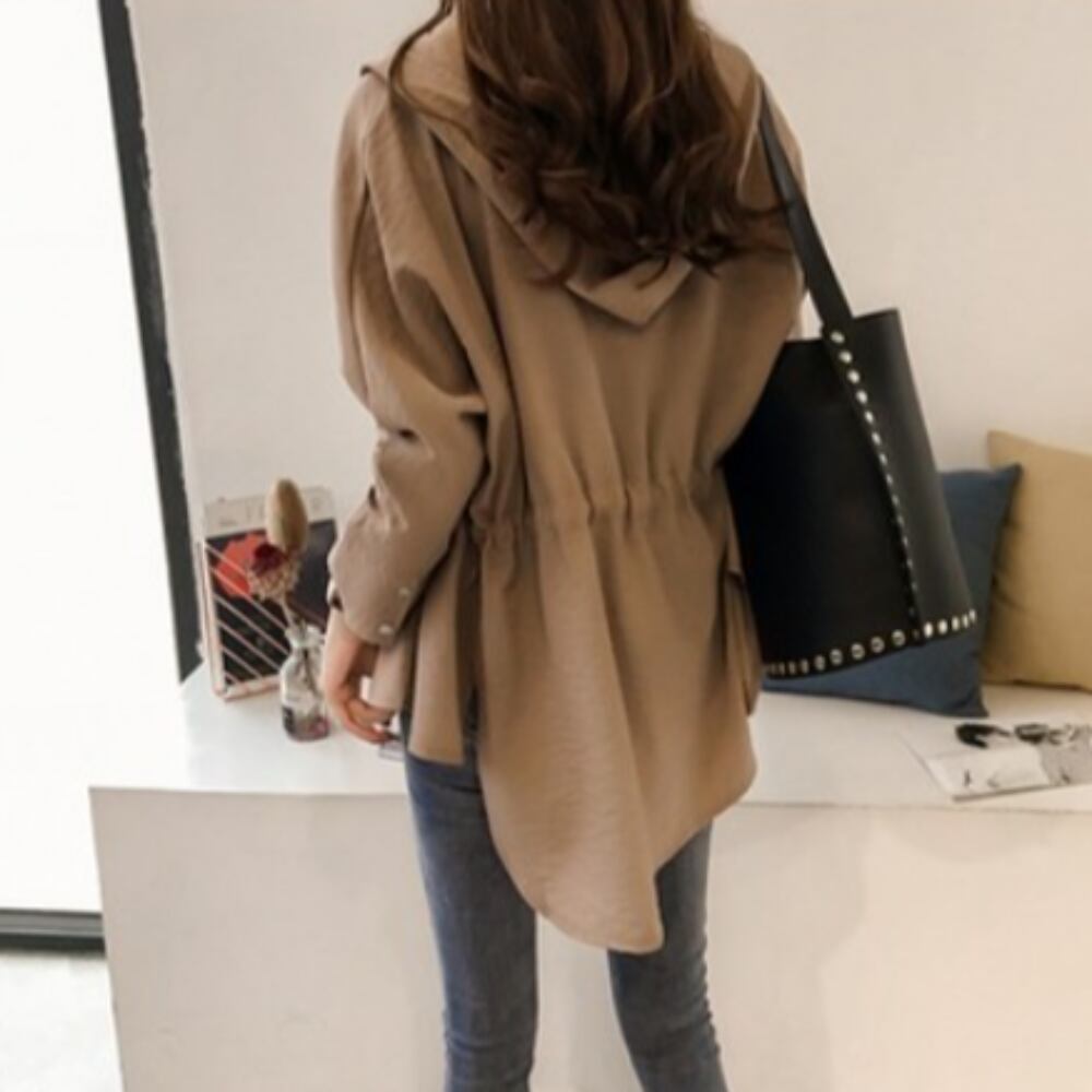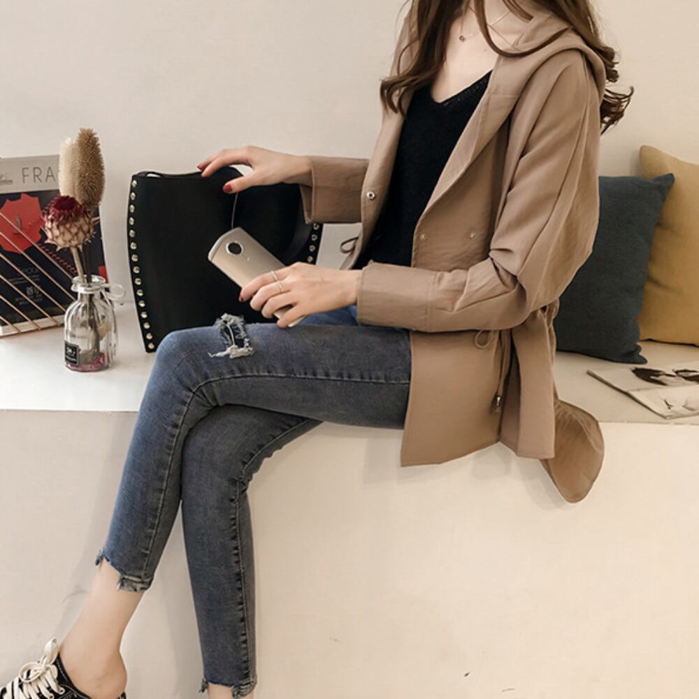 こちらのアウターコートは、春秋にぴったりなロング丈のトレンチコートです。前開きデザインと襟付きのスタイルが大人可愛い印象を与え、シンプルながらも上品な存在感を放ちます。また、フード付きなのでカジュアルにも合わせやすく、デートや休日のお出かけ、通学にぴったりのアイテムです!