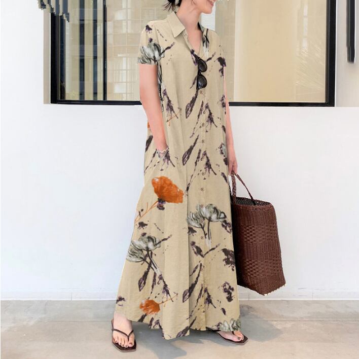 レディース スカート ワンピース ドレス シャツワンピ ロング 半袖 Vネック 襟付き 角襟 フレア Aライン 裾ワイド ポケット リネン コットン かわいい 大人可愛い きれいめ シンプル カジュアル 上品 おしゃれ ナチュラル 無地 春 夏 デート お出かけ お泊まり 公園 女子会 休日 ショッピング 韓国 コーデ 楽ちん 体型カバー 普段使い 着回し モテ 清楚 トレンド 流行 インスタ映え 定番 S M L XL 2XL 3XL 4XL 5XL ブラック アプリコット ネイビー グリーン