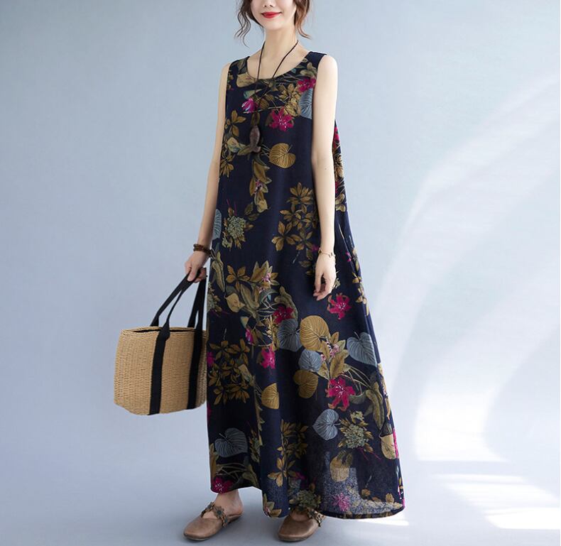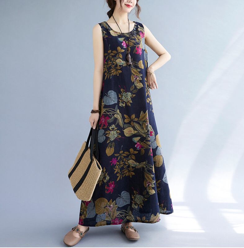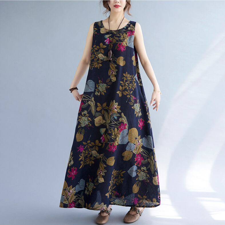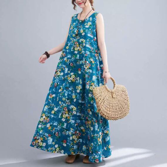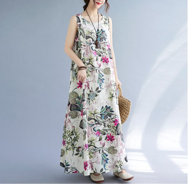 レディース スカート ワンピース ドレス ロングスカート ロング 袖なし ノースリーブ ラウンドネック 襟なし フレア Aライン リネン 綿 コットン 麻 かわいい 大人可愛い きれいめ シンプル カジュアル 上品 おしゃれ こなれ感 ラフ エレガント 主役級 存在感 抜け感 ラブリー キュート ナチュラル 花柄 夏 デート お出かけ お泊まり イベント 公園 女子会 休日 ショッピング 普段使い 着回し モテ 清楚 トレンド 流行 インスタ映え 定番 M L XL 2XL 3XL 4XL 5XL