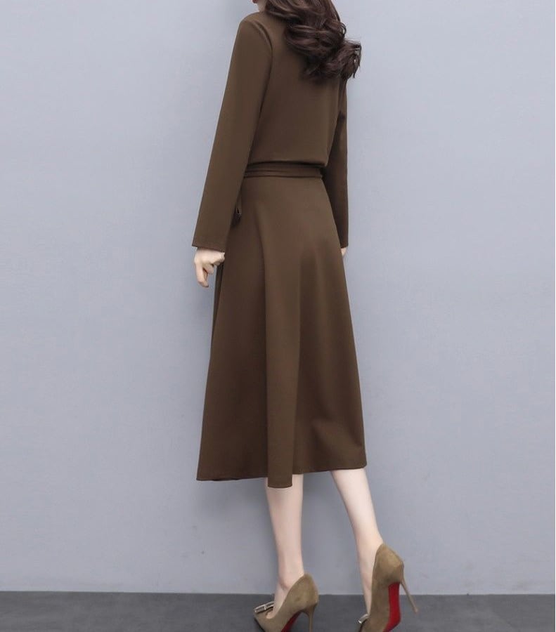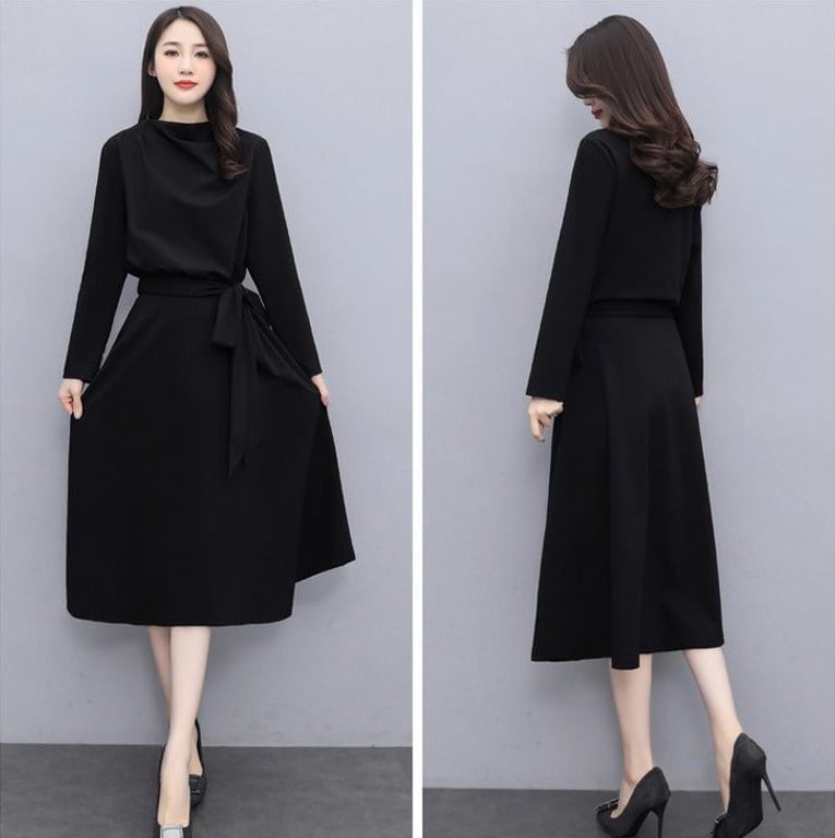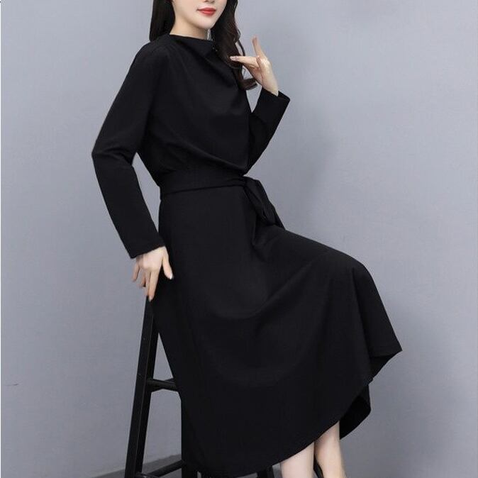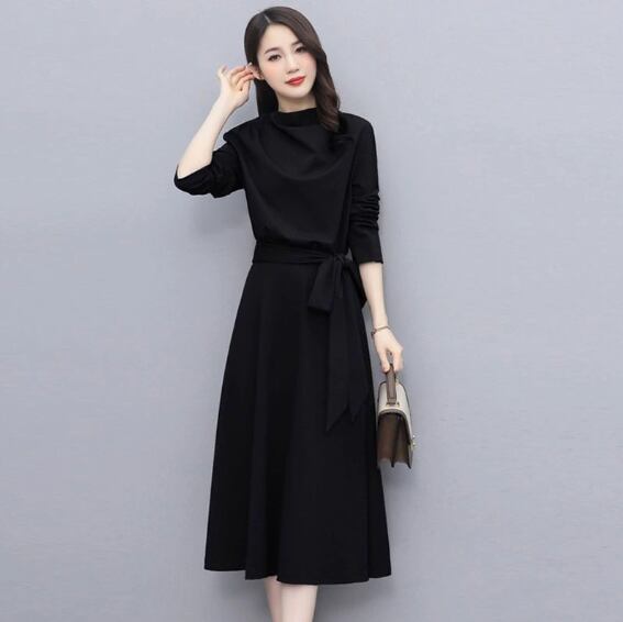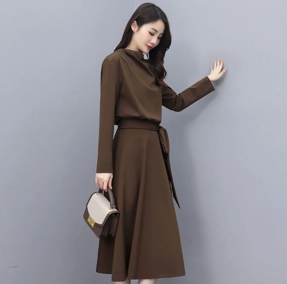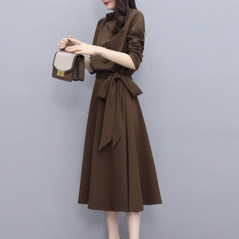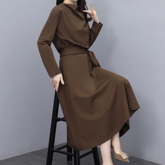 レディース スカート ワンピース フレアスカート 膝下 ミモレ 長袖 Aライン ウエストリボン 薄手 かわいい 大人可愛い きれいめ シンプル カジュアル 上品 おしゃれ かっこいい こなれ感 エレガント 主役級 存在感 フォーマル 都会的 ロマンティック ナチュラル 無地 秋 デート お出かけ お泊まり パーティー イベント リゾート 旅行 レストラン ホテル ショッピング 韓国 コーデ 普段使い モテ 清楚 トレンド 流行 インスタ映え 定番 M L XL 2XL 黒 ブラック 茶色 ブラウン