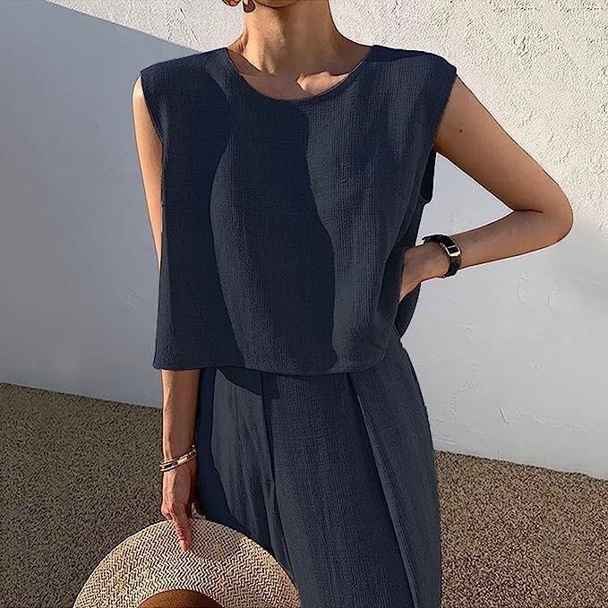 トップス パンツ ボトムス カットソー セットアップ レディース ロングパンツ ワイドパンツ マキシ フルレングス 袖なし ノースリーブ ラウンドネック ワイド フレア ストレート Iライン ドレープ タック ウエストマーク ポケット ハイウエスト リネン 綿 コットン 麻 きれいめ シンプル 上品 おしゃれ かっこいい クール 無地 夏 オフィス OL 通勤 お出かけ レストラン ショッピング 着回し 定番 S M L XL 2XL 3XL 4XL 5XL ブラック カーキ オレンジ ネイビー グリーン