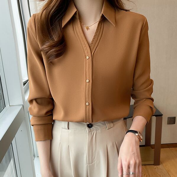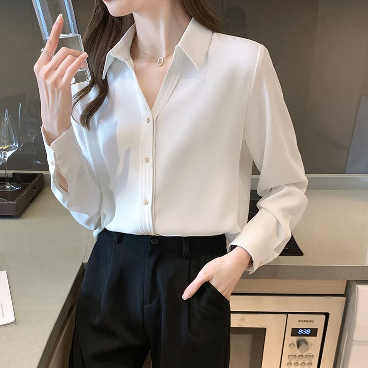 レディース トップス シャツ 長袖 Vネック 襟付き 角襟 かわいい 大人可愛い きれいめ シンプル カジュアル 上品 おしゃれ かっこいい こなれ感 ガーリー エレガント 主役級 存在感 フォーマル 抜け感 学生風 ベーシック カントリー ナチュラル 無地 秋 オフィス ビジネス OL 通勤 デート お出かけ お泊まり リゾート ホテル ショッピング 韓国 コーデ 楽ちん 普段使い 着回し モテ 清楚 トレンド 流行 インスタ映え 定番 S M L XL 白 ホワイト 黒 ブラック 茶色 ブラウン パー