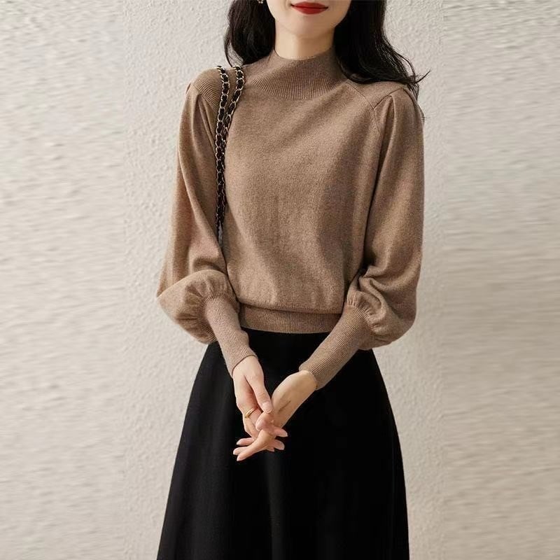 レディース トップス ニット セーター 長袖 パフスリーブ バルーン袖 ホーンスリーブ ハイネック ボトルネック きれいめ シンプル 上品 おしゃれ キュート クラシカル ベーシック 無地 秋 冬 誕生日 発表会 授業参観 会議 ミーティング ママ オフィス ビジネス OL 通勤 学生 通学 デート お出かけ イベント 旅行 レストラン 女子会 休日 ホテル ショッピング 発表会 コンサート 合コン カフェ 清楚 定番 フリーサイズ ブラック ベージュ ブルー ベーシックカラー 大人カラー キャメル