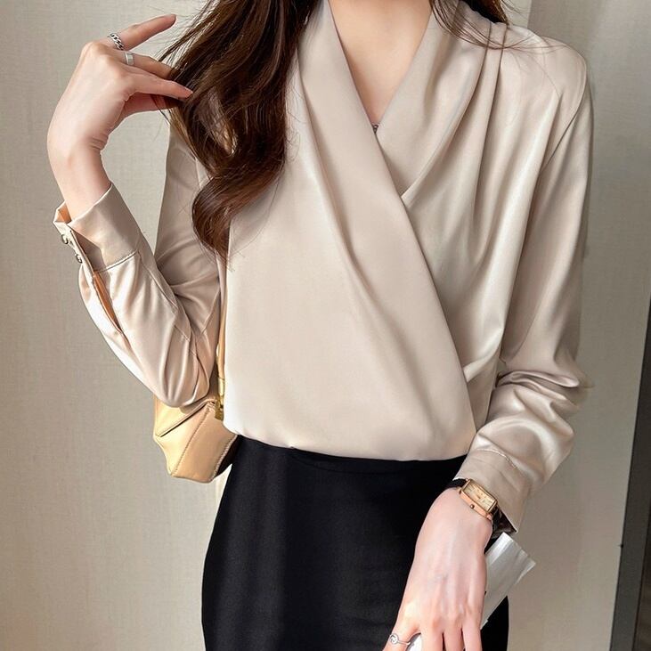 レディース トップス ブラウス プルオーバー 長袖 カシュクール 襟なし 細身 フェミニン コンサバ きれいめ シンプル 上品 おしゃれ クール エレガント モダン フォーマル とろみ感 都会的 ラグジュアリー クラシカル 無地 春 秋 冬 誕生日 入学式 入園式 卒業式 卒園式 謝恩会 二次会 発表会 授業参観 会議 ミーティング プレゼン オフィス ビジネス OL 通勤 デート パーティー レストラン 女子会 ホテル 合コン コンパ 婚活 韓国 コーデ モテ 清楚 S M L XL 2XL ベーシック