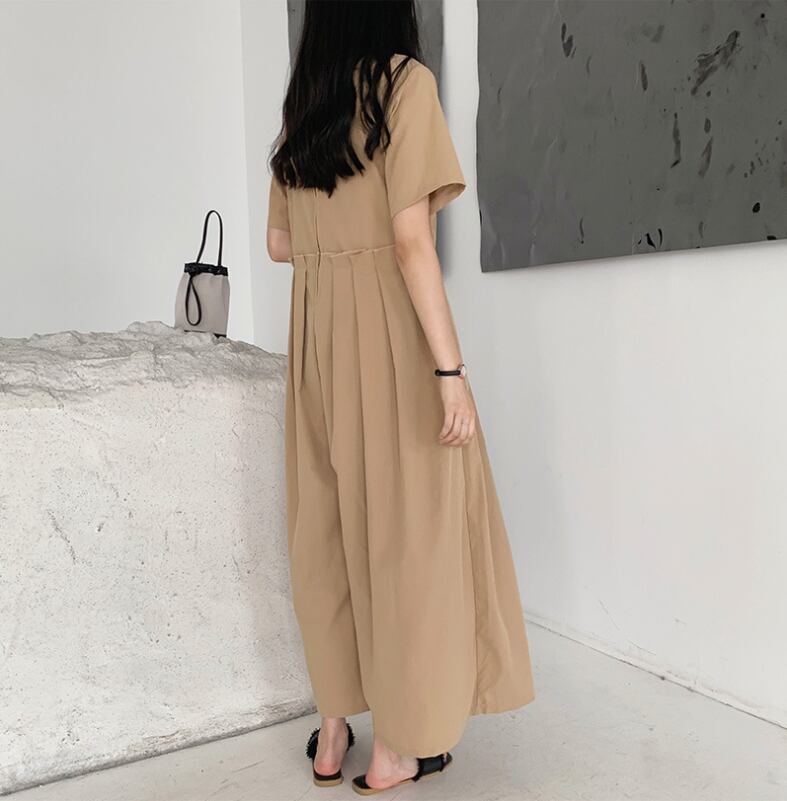 ジャンプスーツ レディース パンツ ボトムス オールインワン つなぎ 膝下 ロング 半袖 ラウンドネック ワイド ハイウエスト かわいい 大人可愛い きれいめ シンプル カジュアル 上品 おしゃれ こなれ感 ラフ モード系 主役級 存在感 抜け感 クラシカル ベーシック カントリー アクティブ ナチュラル 無地 春 夏 デート お出かけ お泊まり 公園 女子会 休日 ショッピング 韓国 コーデ 楽ちん 体型カバー 普段使い 着回し モテ 清楚 トレンド 流行 インスタ映え 定番 フリーサイズ 黒 ブラック