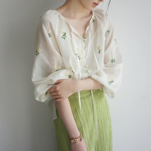 レディース スカート トップス シャツ ブラウス 膝下 ロング 長袖 Vネック レース 刺繍 透け感 かわいい 大人可愛い きれいめ シンプル カジュアル 上品 おしゃれ こなれ感 ラフ ガーリー エレガント 主役級 存在感 抜け感 プリンセス 都会的 ベーシック カントリー ロマンティック ナチュラル 無地 花柄 春 夏 デート お出かけ お泊まり パーティー イベント リゾート レストラン 公園 女子会 休日 ショッピング 韓国 コーデ 普段使い 着回し モテ 清楚 トレンド 流行 インスタ映え 定番