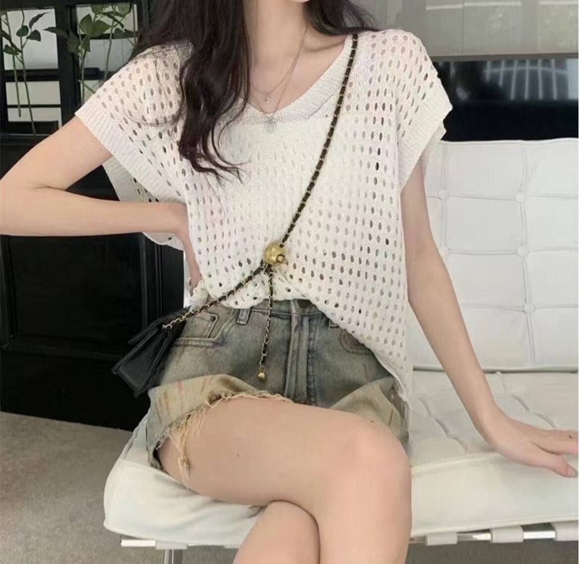 トップス プルオーバー ベスト サマーニット レディース 羽織 フレンチスリーブ Vネック フェミニン 透け感 透かし編み メッシュ 大人可愛い シンプル カジュアル おしゃれ こなれ感 ラフ ルーズ 個性的 存在感 抜け感 ナチュラル 涼しげ 軽やか 通気性 無地 春 夏 OL 通勤 デート お出かけ イベント 女子会 休日 ショッピング カフェ ランチ 重ね着 韓国 オルチャン コーデ 楽ちん 普段使い 着回し レイヤード フリーサイズ ワンサイズ ベージュ ホワイト ライトグレー モカ ブラック