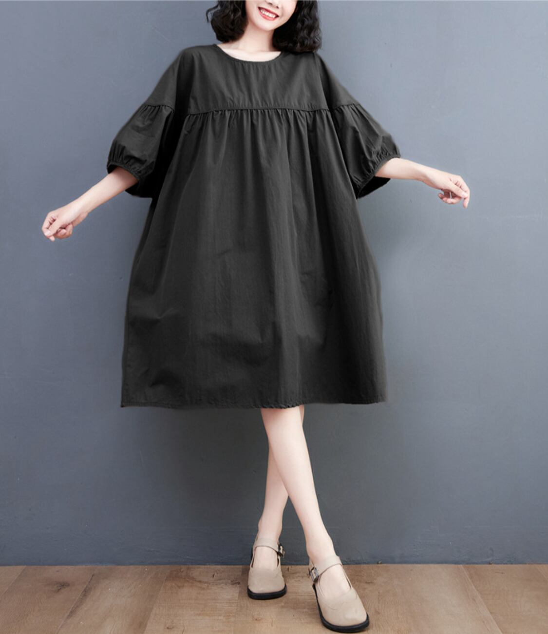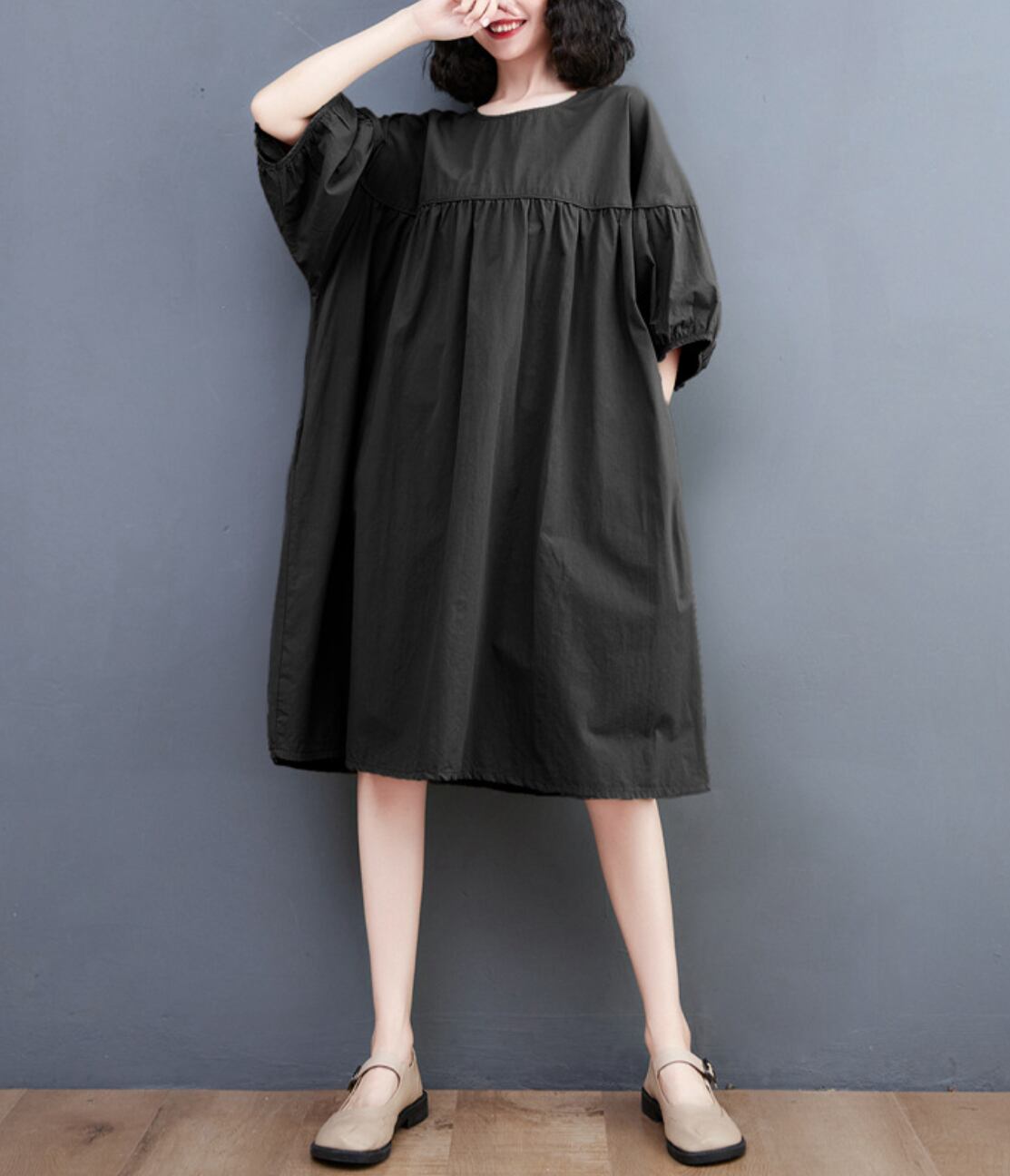 レディース ワンピース フレア フレアスカート 膝丈 ミディアム 半袖 ボリューム袖 ドルマンスリーブ パフスリーブ Uネック ラウンドネック 襟なし ワイド フレア Aライン バルーン かわいい カジュアル 個性的 ラブリー キュート 無地 夏 ママ マタニティ デート お出かけ お泊まり 旅行 海 プール ビーチ 女子会 休日 高原 ホテル ガーデン ショッピング モノトーン お揃い 双子 韓国 オルチャン コーデ 楽ちん 普段使い 着回し 定番 ゆったり ゆる フリーサイズ ブラック カーキ