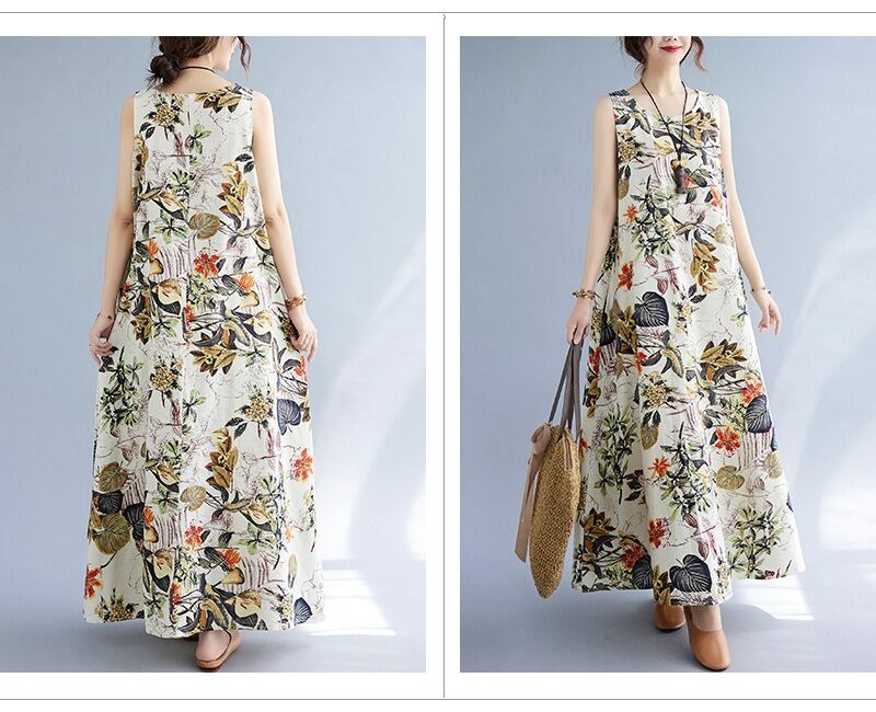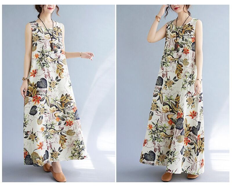 ワンピース フレア ロングスカート ロング マキシ 丈長 ノースリーブ ラウンドネック 襟なし フレア 切り替え 裾ワイド コットン リネン 大人可愛い シンプル カジュアル ラフ ガーリー ルーズ 学生風 ベーシック カントリー ナチュラル 総柄 花柄 春 夏 授業参観 ママ マタニティ OL 通勤 学生 通学 デート お出かけ リゾート 旅行 レストラン 公園 女子会 休日 ショッピング カフェ 楽ちん 体型カバー 普段使 M L XL 2XL 3XL 4XL 5XL レッド オレンジ ネイビー