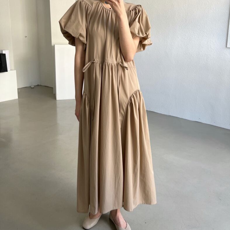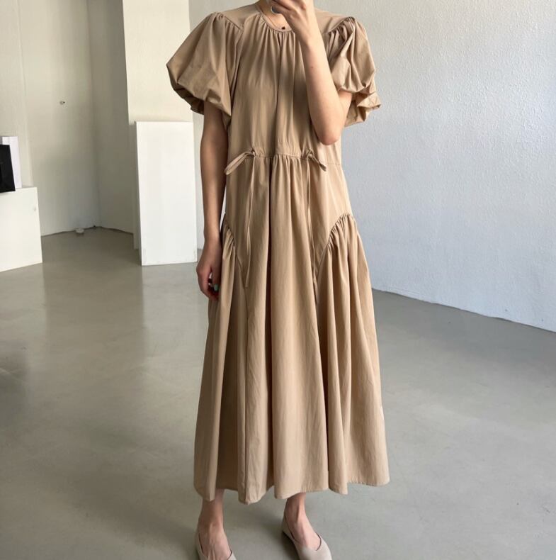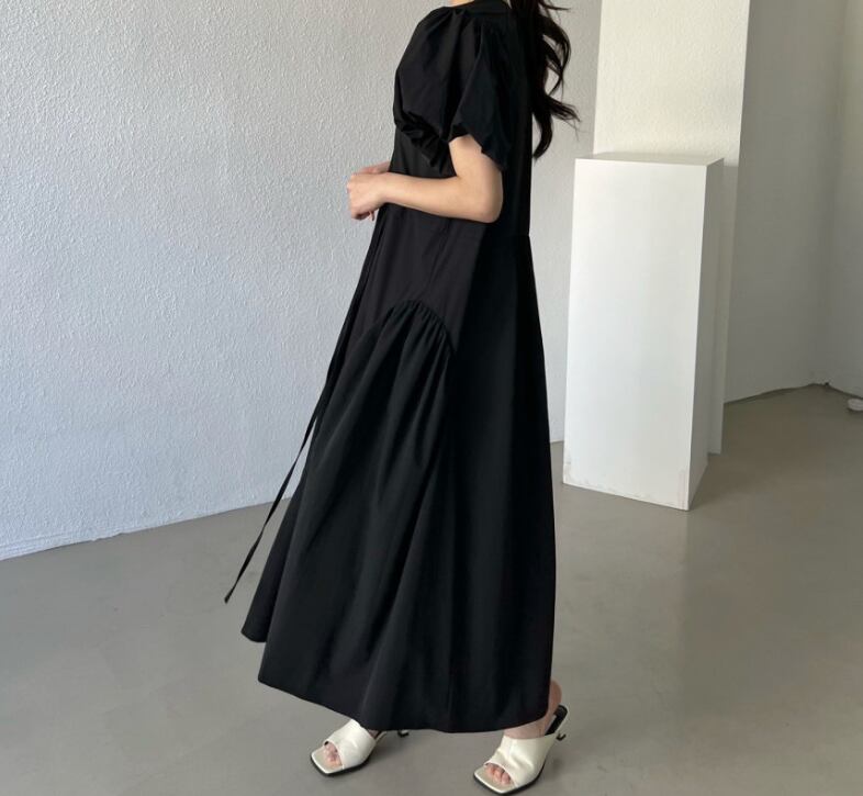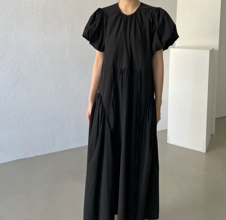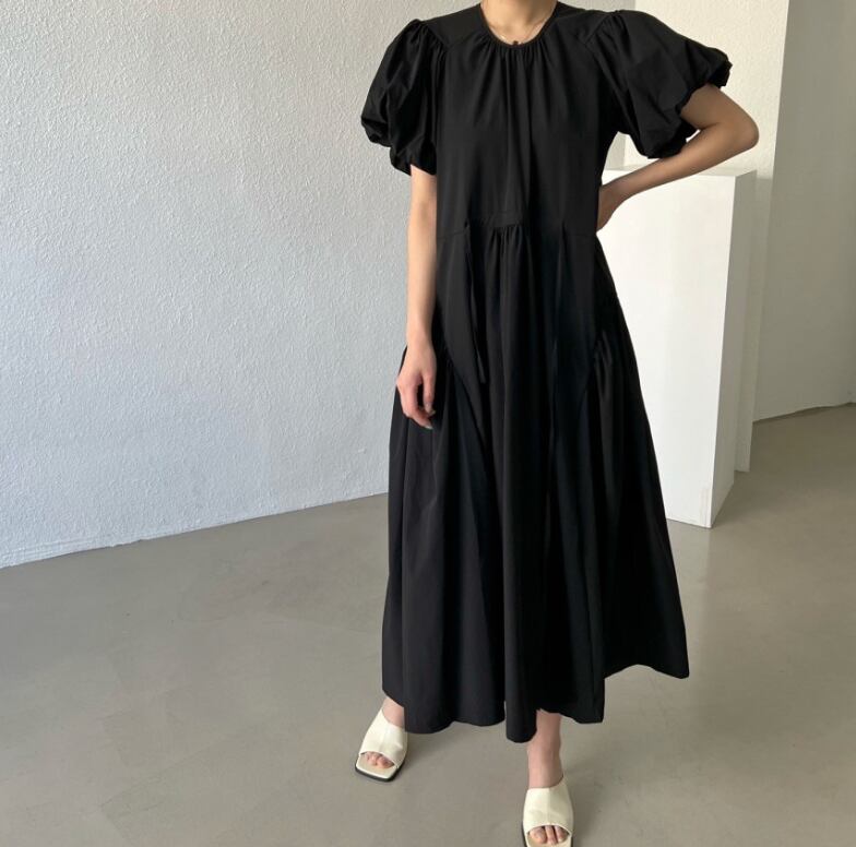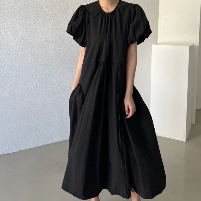 レディース スカート ワンピース ドレス 膝下 ロング ボリューム袖 ラウンドネック 襟なし ワイド フレア Aライン かわいい 大人可愛い きれいめ シンプル カジュアル 上品 おしゃれ レトロ こなれ感 ラフ エレガント 抜け感 都会的 クラシカル ベーシック カントリー ナチュラル 無地 夏 デート お出かけ お泊まり 公園 女子会 休日 バカンス ショッピング 韓国 コーデ 楽ちん 体型カバー 普段使い 着回し モテ 清楚 トレンド 流行 インスタ映え 定番 大きいサイズ ワンサイズ 黒 ブラック