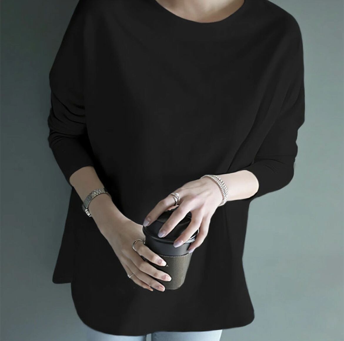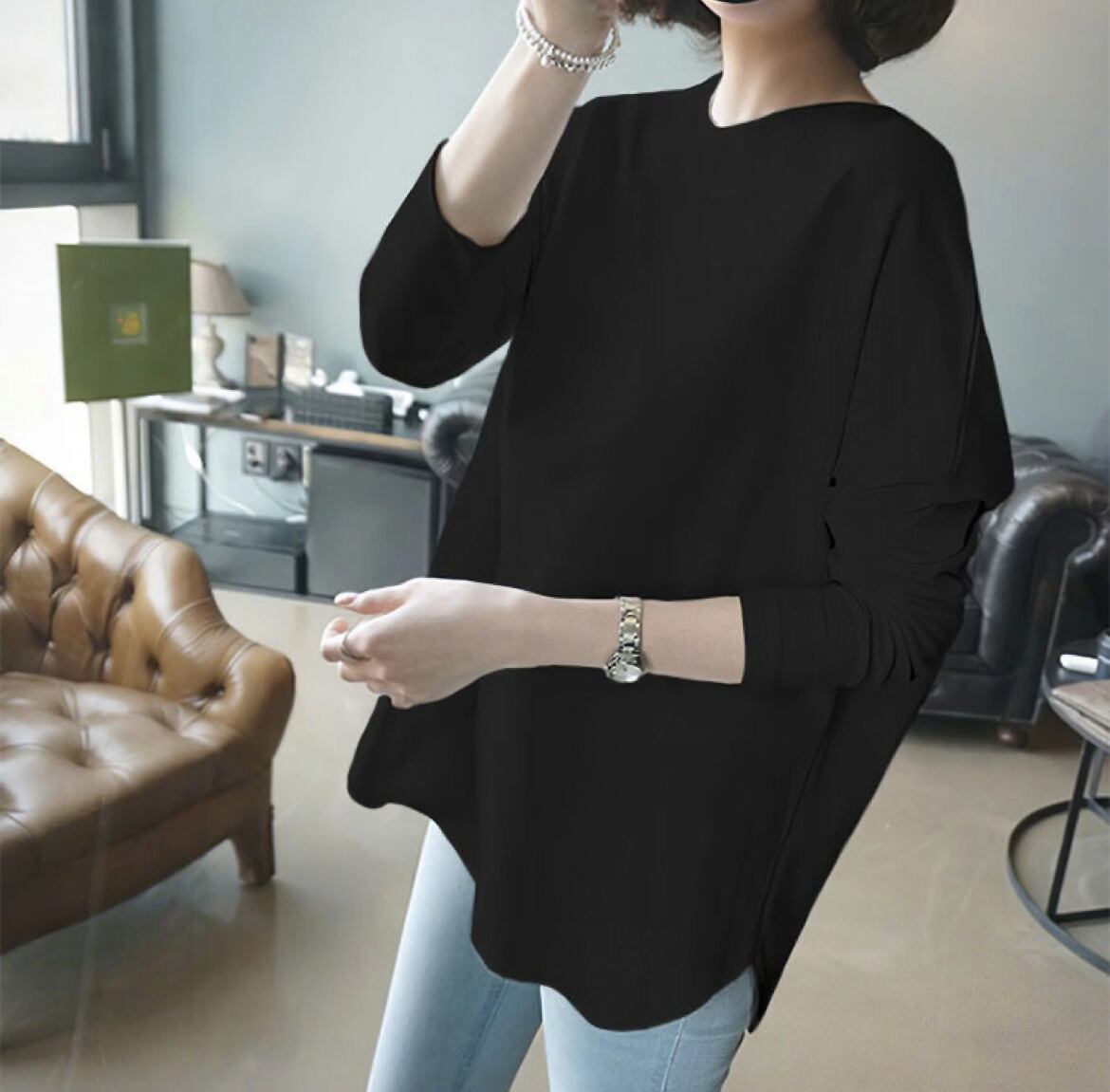 アシンメトリーなシルエットは、こなれ感を出しつつ体型カバー効果もあり、幅広いシーンで活躍します♪