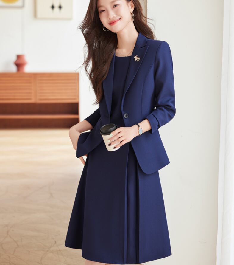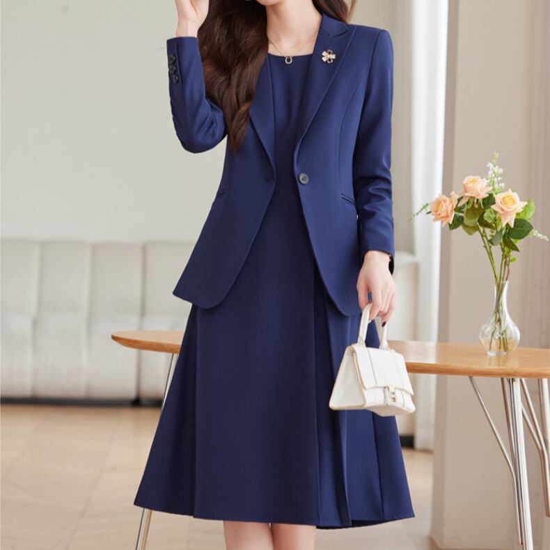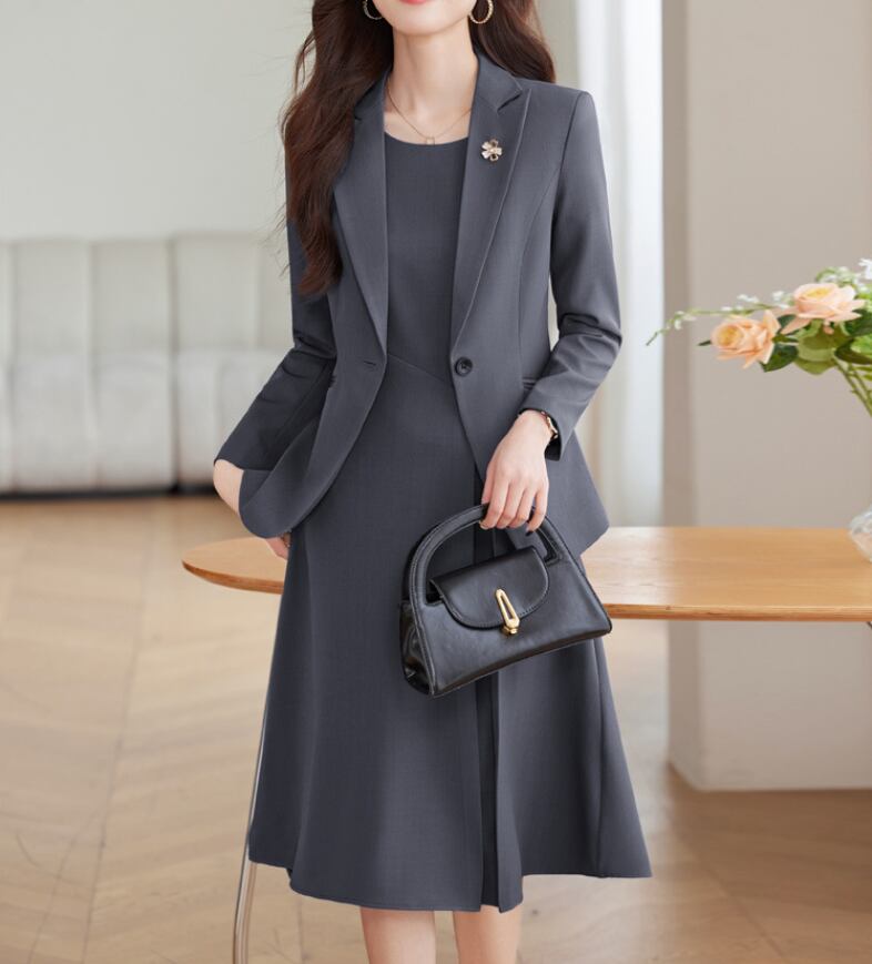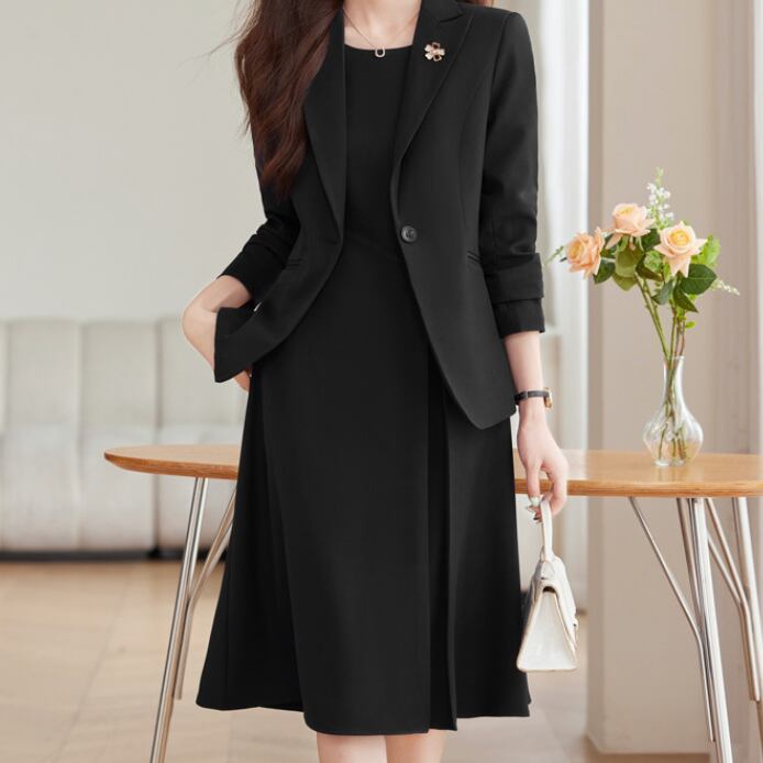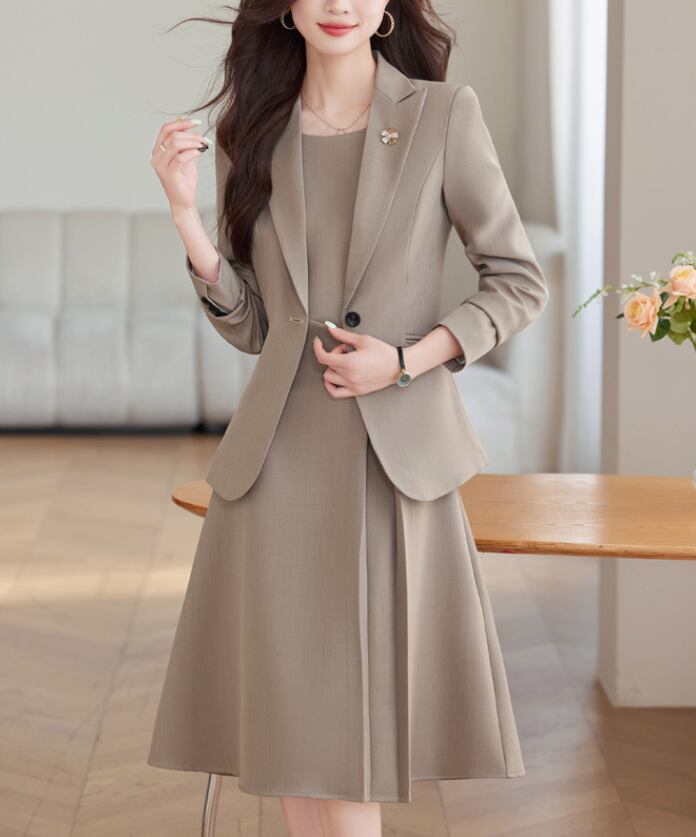 洗練されたテーラードジャケットと、膝下のミモレ丈が魅力的なワンピースがセットになったこのアイテムは、シンプルながらもおしゃれで、さまざまなシーンで活躍します。