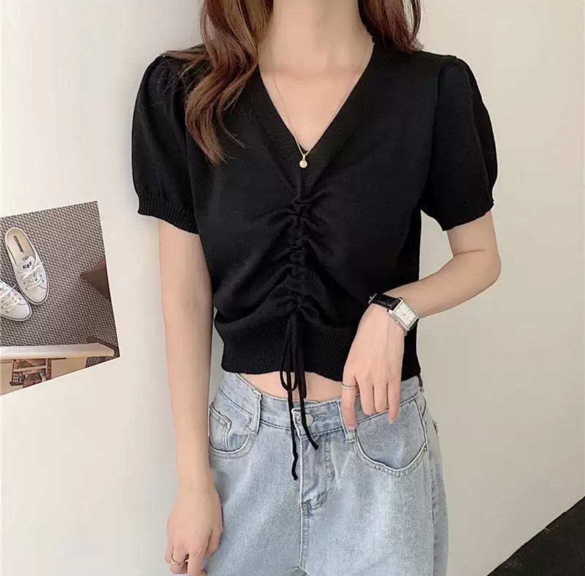トップス サマーニットプルオーバー レディース 半袖 Vネック フェミニン ドロスト ギャザー シャーリング 大人可愛い きれいめ シンプル カジュアル 上品 おしゃれ ラフ 抜け感 キュート ナチュラル 清潔感 涼しげ リラックス 無地 春 夏 オフィス OL 通勤 デート お出かけ イベント 女子会 休日 ショッピング カフェ フェス ランチ 韓国 オルチャン コーデ 体型カバー 普段使い 着回し モテ 清楚 トレンド スタイルアップ S M L ホワイト ブラック ライトブルー ライトグリーン