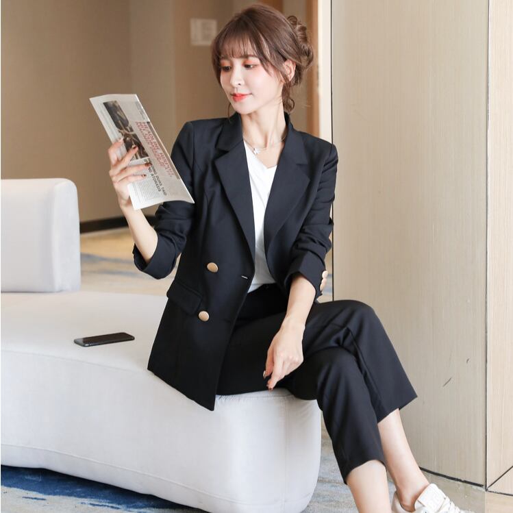 シンプルで上品なデザインは、オフィスや会議、通勤にもぴったりです。クロップドスカートと長袖ジャケットがセットになっているので、組み合わせ次第で様々なスタイルを楽しめます。きれいめからカジュアルまで幅広くコーディネートが可能です。