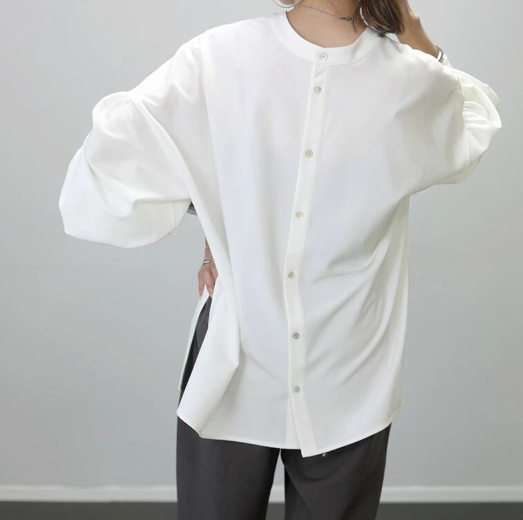 大人可愛いを楽しむ「レディーストップス シャツ 長袖 ボリューム袖 ラウンドネック」は、あなたのスタイルを一層引き立てるアイテムです!