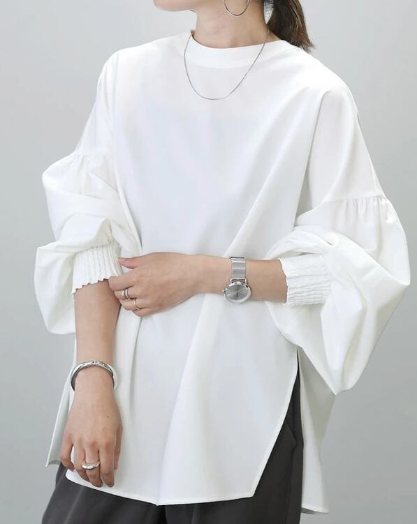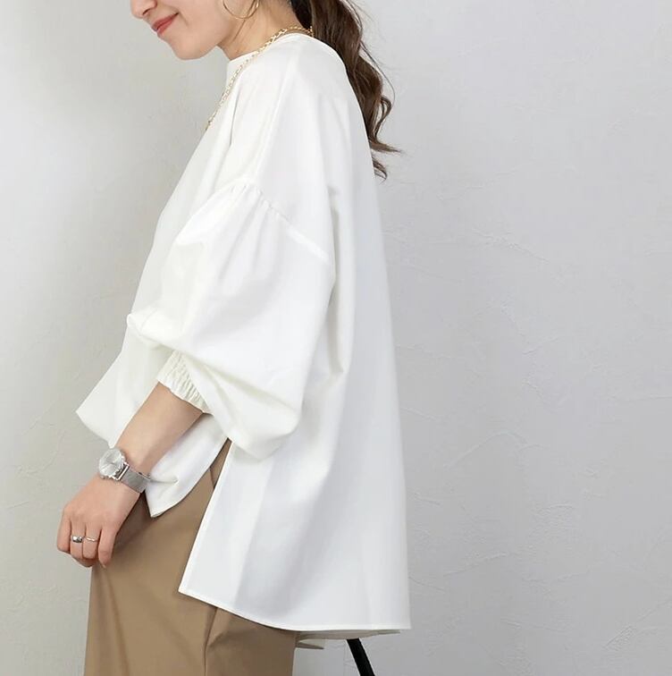 軽やかな素材感とボリューム袖が魅力的で、シンプルながらも上品なデザインが特徴です。サイドスリットが施されているため、動きやすさも抜群です。春のお出かけやデート、女子会、パーティーなど、さまざまなシーンでコーディネートが楽しくなる一着です。カジュアルにも、きれいめにも合わせられ、どんなスタイルにもマッチします。着回し力も抜群で、普段使いにも最適です。これ一枚で主役級の存在感を演出できます。