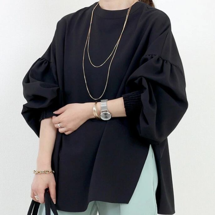 レディース トップス シャツ 長袖 ボリューム袖 ラウンドネック サイドスリット かわいい 大人可愛い きれいめ シンプル カジュアル 上品 おしゃれ こなれ感 ラフ モード系 主役級 存在感 クラシカル ベーシック ナチュラル 清潔感 軽やか 爽やか 無地 春 デート お出かけ お泊まり パーティー イベント リゾート 旅行 公園 女子会 休日 ショッピング 重ね着 韓国 コーデ 楽ちん 普段使い 着回し モテ 清楚 トレンド 流行 インスタ映え 定番 ワンサイズ 白 ホワイト 黒 ブラック アプリコッ