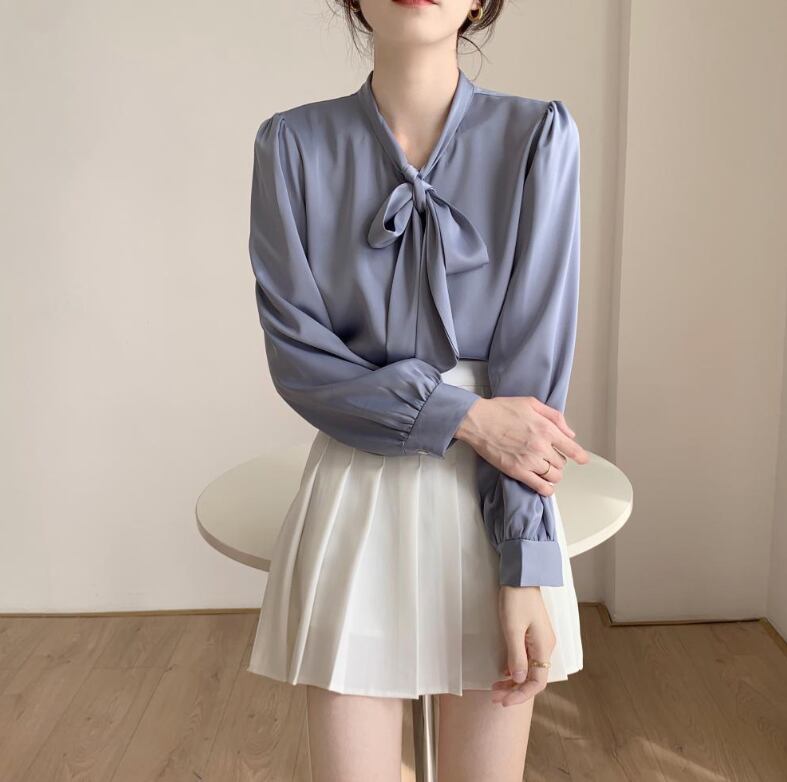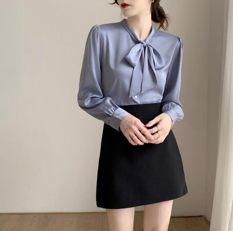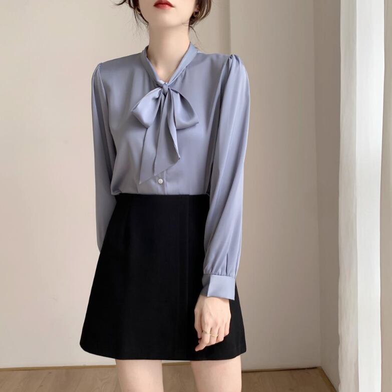 レディース トップス シャツ ブラウス 長袖 リボン サテン かわいい 大人可愛い きれいめ シンプル カジュアル 上品 おしゃれ こなれ感 ラフ ガーリー エレガント 主役級 存在感 抜け感 都会的 クラシカル ベーシック カントリー ナチュラル 清潔感 リラックス 軽やか 爽やか 無地 春 デート お出かけ お泊まり パーティー イベント レストラン 公園 女子会 休日 ショッピング 重ね着 韓国 コーデ 普段使い 着回し モテ 清楚 トレンド 流行 インスタ映え 定番 S M L