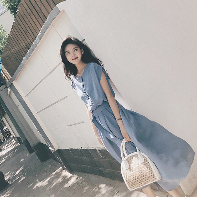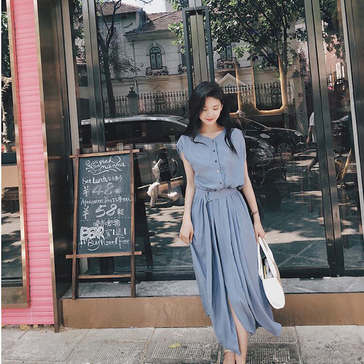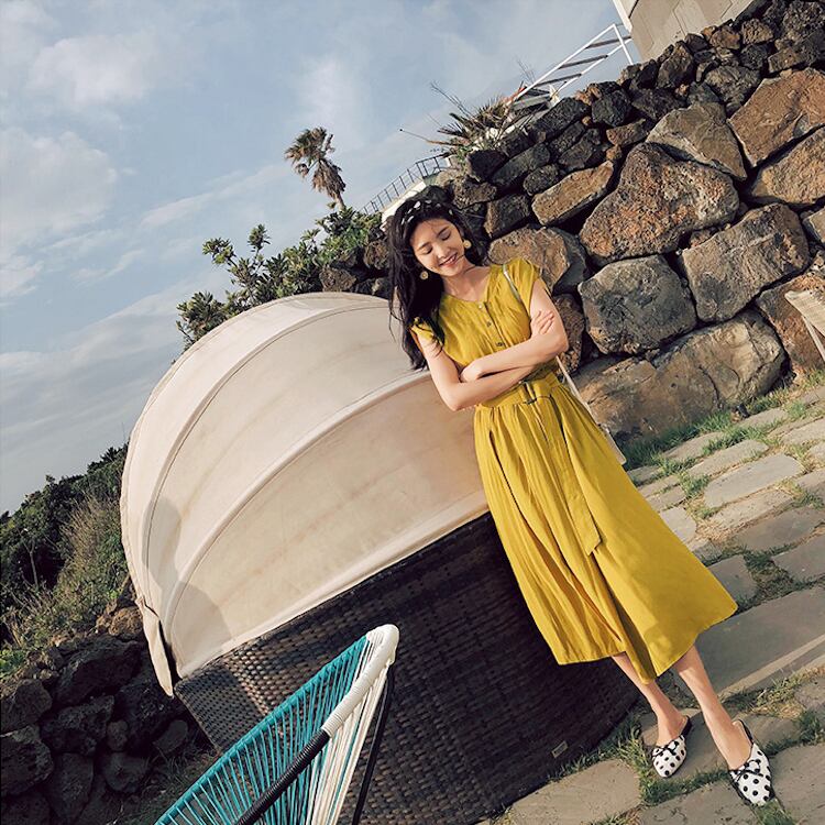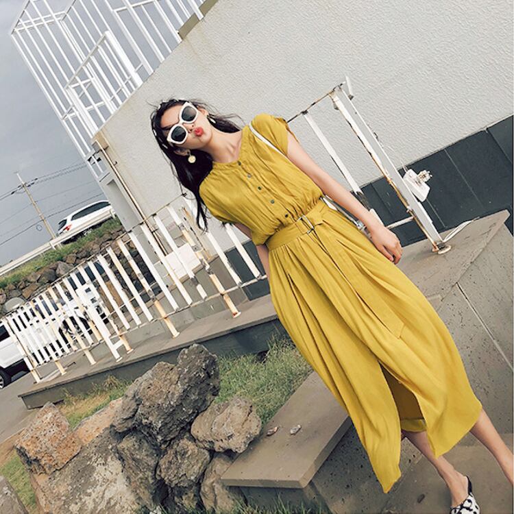 レディース ワンピース フレア ミモレ フレンチスリーブ Vネック 襟なし ノーカラー フレア Aライン フェミニン ベルト ウエストマーク スリット ハイウエスト ボタン かわいい 大人可愛い きれいめ シンプル カジュアル 上品 おしゃれ こなれ感 キュート クラシカル ロマンティック ナチュラル 涼しげ 爽やか 無地 夏 ママ マタニティ OL デート お出かけ 旅行 公園 女子会 休日 ショッピング 合コン カフェ 婚活 ランチ コーデ モテ S M L XL 黒 ブラック 黄色 イエロー ブルー