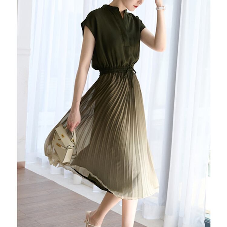 レディース ワンピース フレア 膝下 ミディアム フレンチスリーブ Vネック フレア フェミニン プリーツ ウエストマーク ウエストリボン 透け感 大人可愛い きれいめ 上品 おしゃれ こなれ感 存在感 都会的 クラシカル ロマンティック 涼しげ 軽やか 爽やか グラデーション 夏 ママ マタニティ OL 通勤 デート お出かけ 旅行 レストラン 休日 ショッピング 発表会 コンサート 合コン コンパ カフェ 婚活 ランチ コーデ 着回し モテ 清楚 S M L XL 2XL ブルー 緑 グリーン