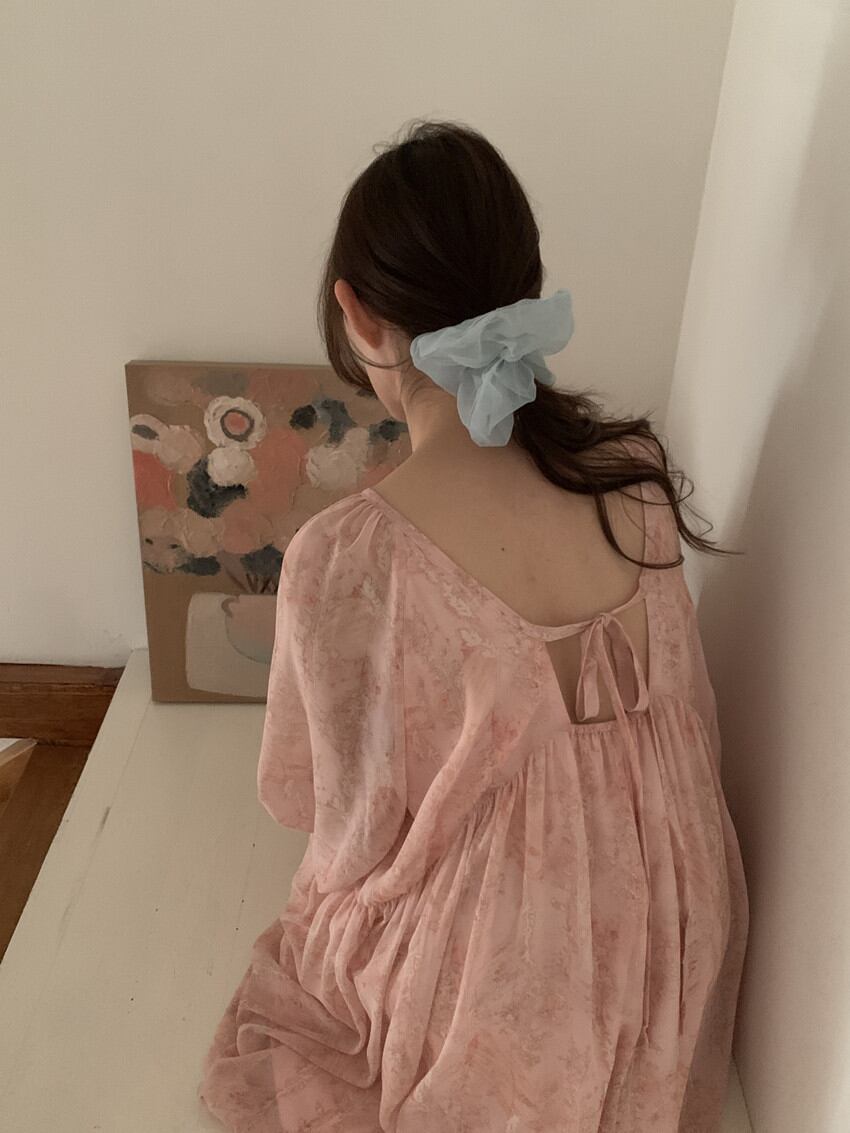 シーズンにぴったりなロマンティックなデザインのワンピースです。ボリューム袖とUネック、背中の開き具合が絶妙で、オーバーサイズのシルエットがリラックスした雰囲気を演出します。バックリボンデザインでバックコンシャスな魅力をプラス。ふっくらしたギャザーとシャーリングが大人可愛い印象を与え、涼しげで軽やかに仕上げました。