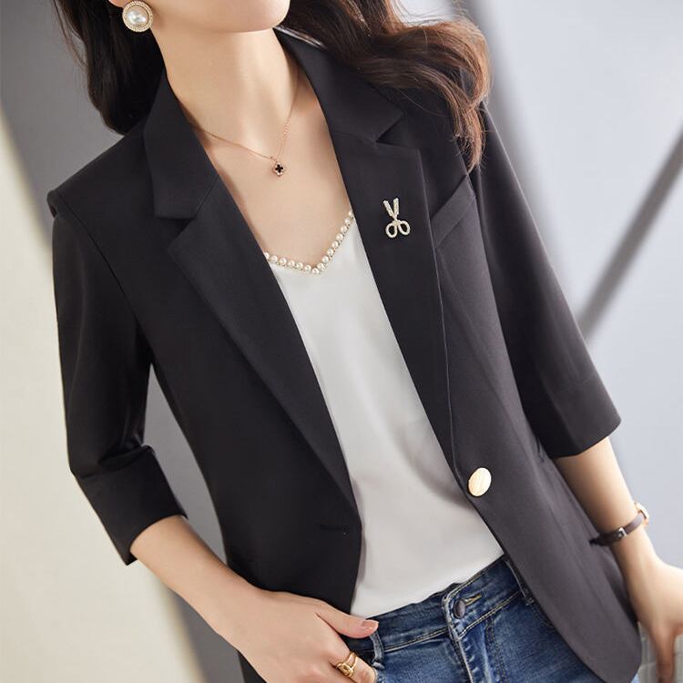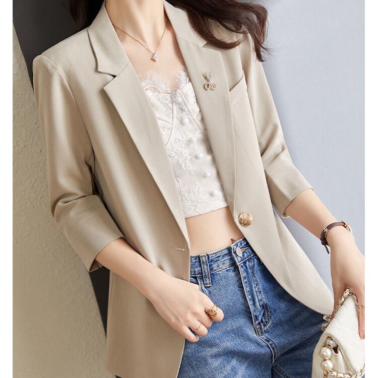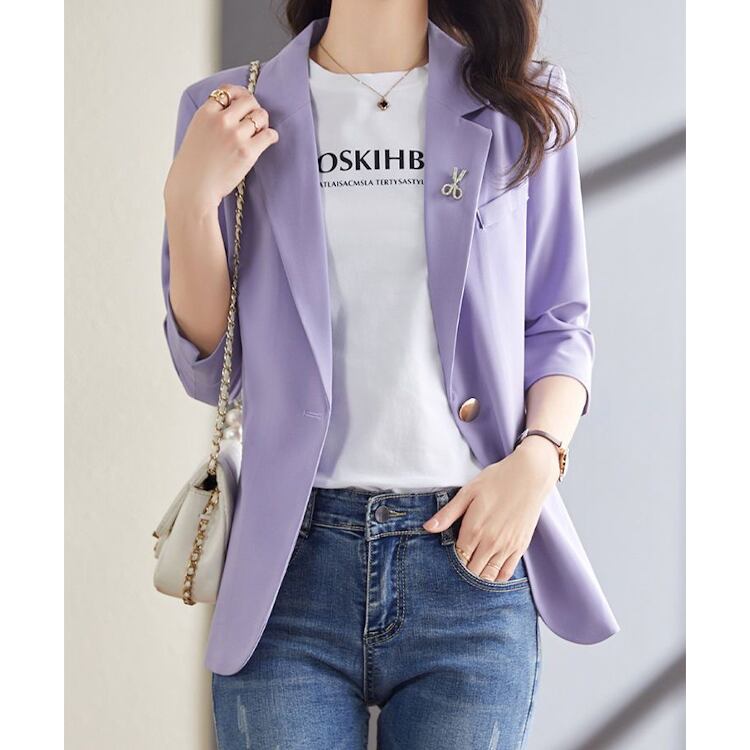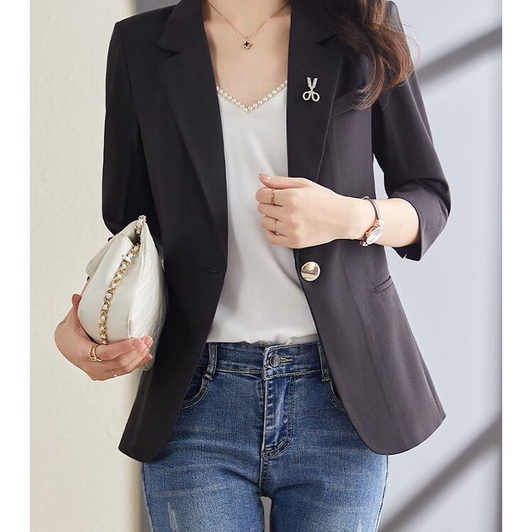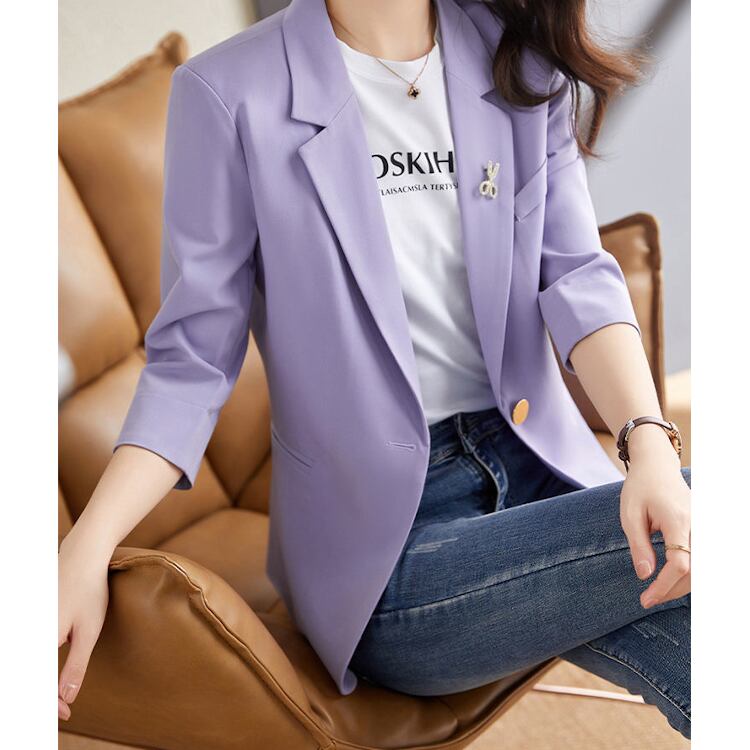 都会的な雰囲気漂う、7分袖デザインのレディースジャケット。