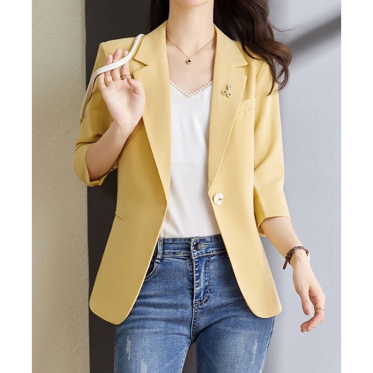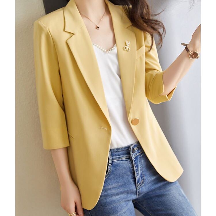 レディース ジャケット スーツ 前開き 7分袖 襟付き 角襟 ポケット ボタン きれいめ シンプル 上品 おしゃれ かっこいい クール エレガント 存在感 フォーマル かっちり 都会的 クラシカル ベーシック 爽やか 無地 春 夏 秋 授業参観 ママ オフィス ビジネス OL 通勤 お出かけ コンパ 婚活 ランチ お呼ばれ オケージョン コーデ 着回し 定番 M L XL 2XL 3XL 4XL 大きいサイズ ビッグ 黒 ブラック 黄色 イエロー カーキ 緑 グリーン 大人カラー 春カラー パープル