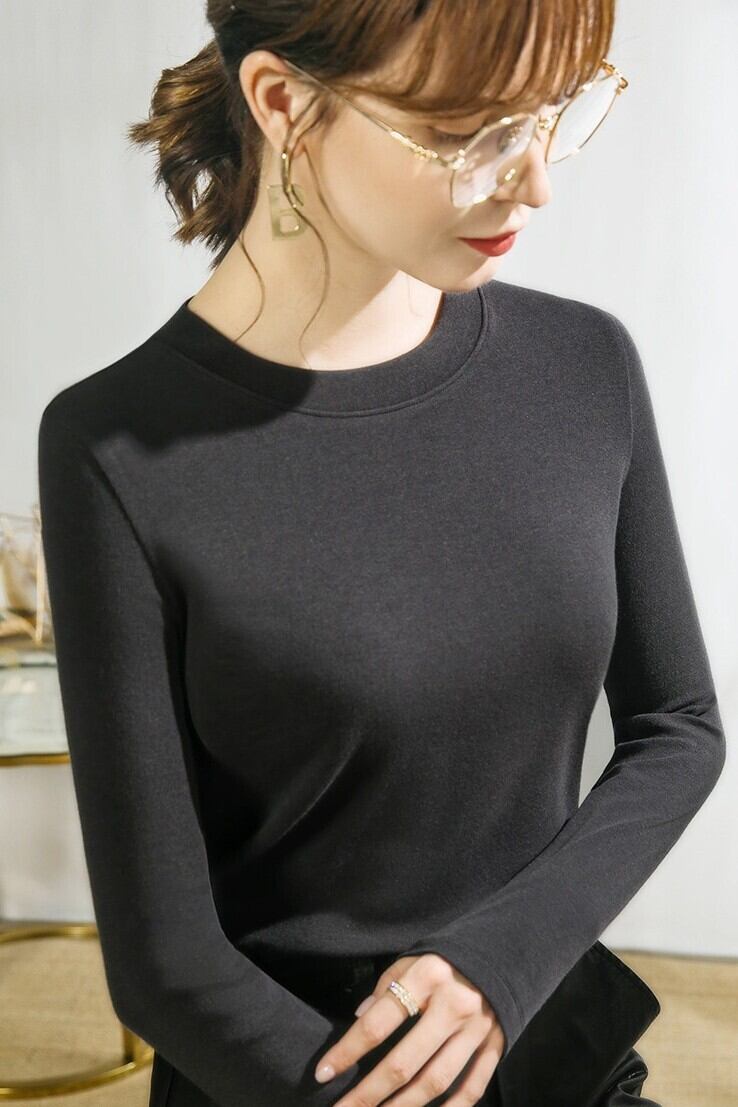 肌触り良く、着回しやすい、シンプルな長袖ニットセーターです。