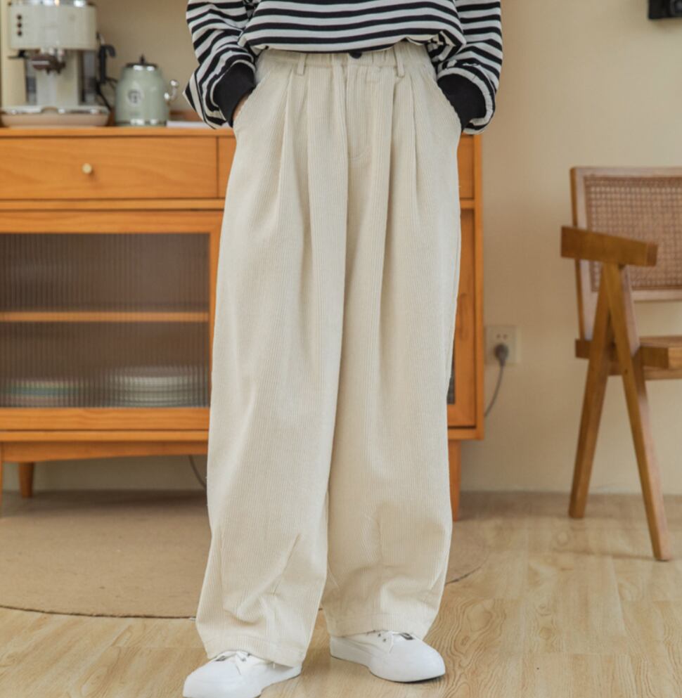 秋冬のカジュアルスタイルにぴったりなコーデュロイパンツが。シンプルでありながら、こなれ感を演出するデザインが魅力です、さまざまなシーンに対応できます。