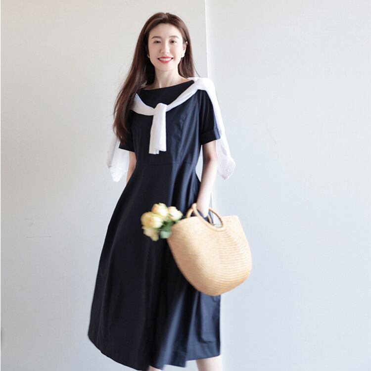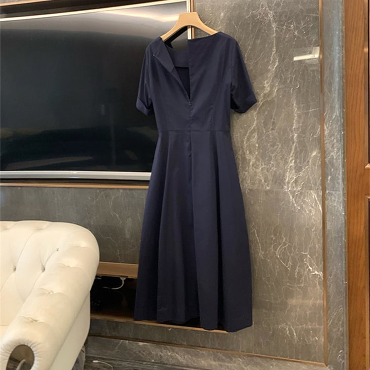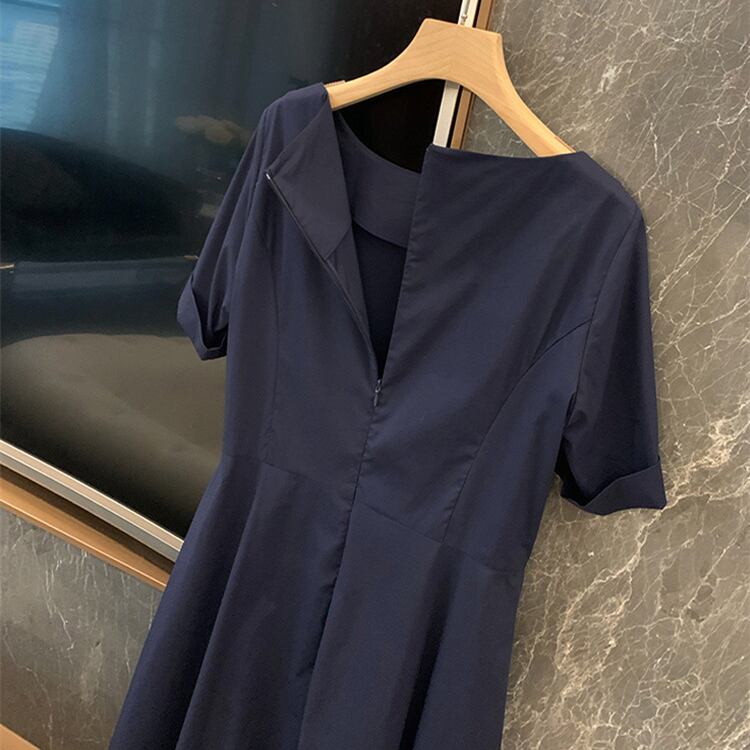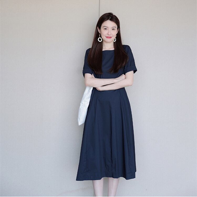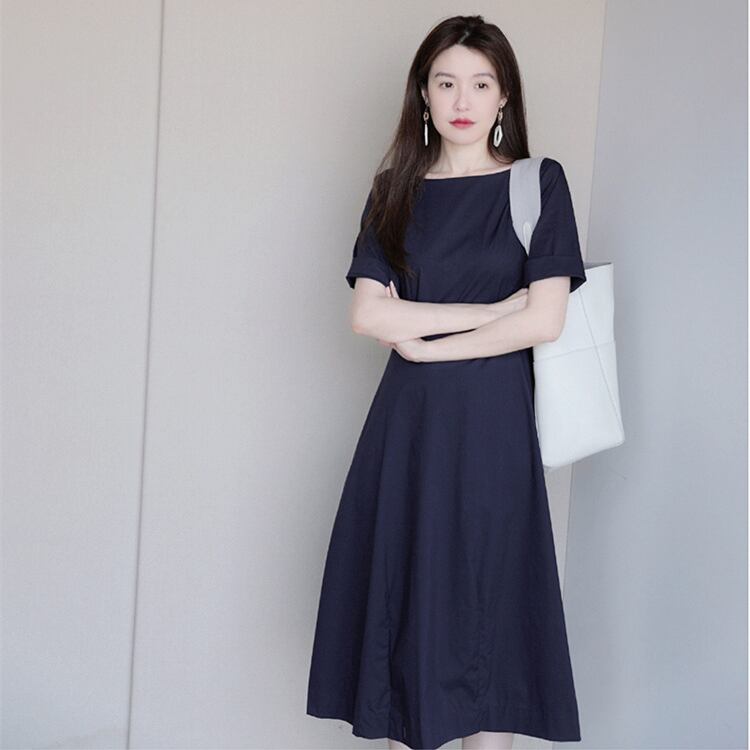 レディース ワンピース フレア ミモレ 半袖 ボートネック 襟なし ノーカラー Aライン ファスナー ポケット ハイウエスト 切り替えデザイン 大人可愛い きれいめ シンプル 上品 おしゃれ こなれ感 エレガント 存在感 キュート 都会的 クラシカル ベーシック 清潔感 爽やか 無地 夏 ママ OL デート お出かけ 旅行 女子会 休日 ショッピング 発表会 コンサート 合コン コンパ カフェ お呼ばれ コーデ 普段使い 着回し モテ 清楚 定番 S M L XL ネイビー ベーシックカラー 大人カラー