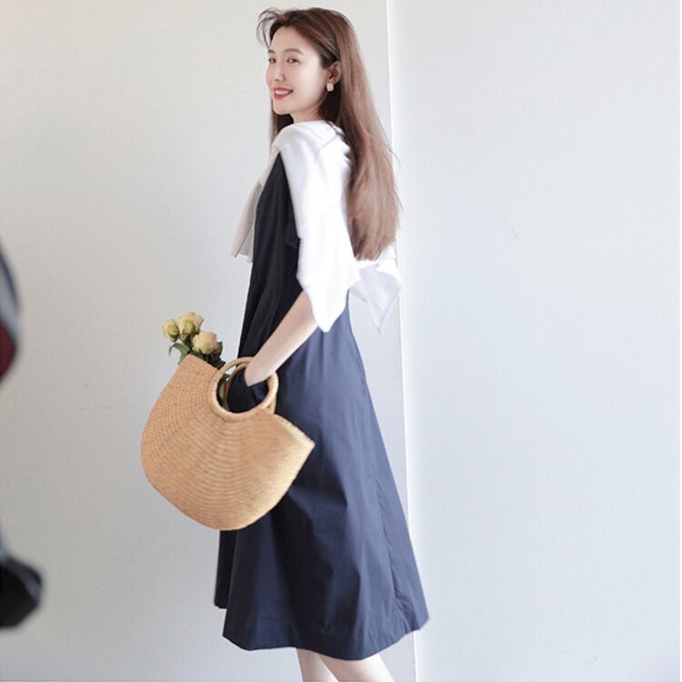Aラインに広がるミモレ丈が大人の可愛らしさを引き立てつつ、清潔感と爽やかさを演出します。
