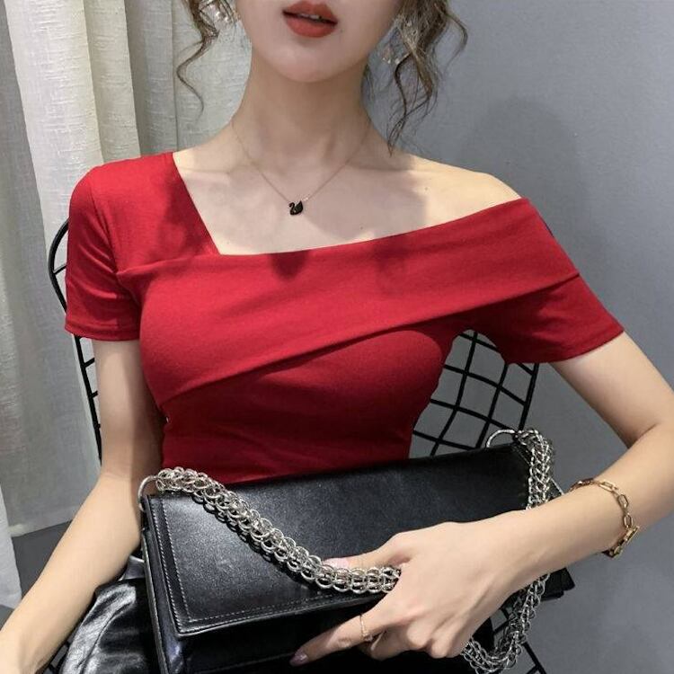 レディース トップス カットソー Tシャツ 半袖 襟なし タイト スリム 細身 アシンメトリー フェミニン ストリート かわいい 大人可愛い カジュアル おしゃれ かっこいい こなれ感 個性的 クール 涼しげ 無地 夏 OL 学生 デート お出かけ 旅行 海 レストラン 公園 女子会 休日 ガーデン ショッピング コンサート ライブ 合コン コンパ カフェ フェス ランチ コーデ 普段使い 着回し モテ インスタ映え S M L XL 白 ホワイト 黒 ブラック ワインレッド 緑 グリーン 大人カラー