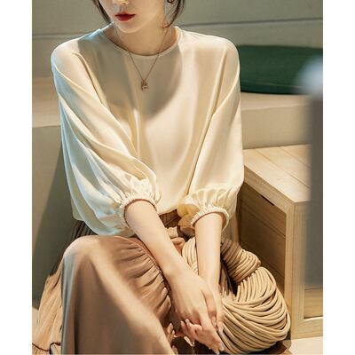 サテン素材の上品な1枚が、あなたのワードローブに華やかさを加えます。とろみ感があり、軽やかで涼しげな印象を与えるこのブラウスは、春から秋まで長いシーズンで活躍すること間違いなし!