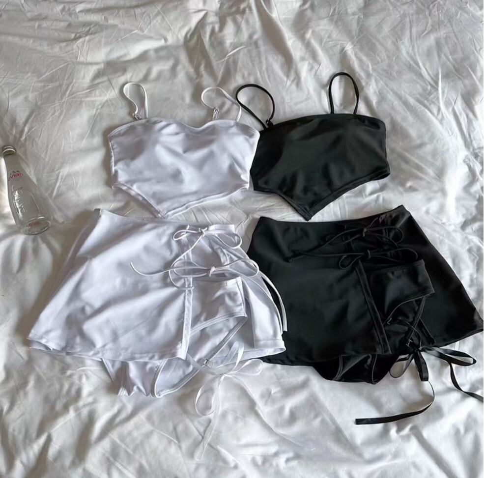 水着 ビキニ レディース 紐 マイクロ 体型カバー セパレート キャミキミ セット ツーピース スリーピース 上下セット きれいめ シンプル ナチュラル 大人っぽい おしゃれ お洒落 レトロ 存在感 個性的 クール モード系 スタイリッシュ かっこいい エキゾチック セクシー ヘルシー 無地 リゾート 旅行 温泉 プール 夏 海 美脚 脚長 着痩せ スタイルアップ 韓国 高見え プチプラ モテ 背中見せ 体型カバー インスタ映え 日除け スタイルカバー こなれ感 M L XL ホワイト ブラック