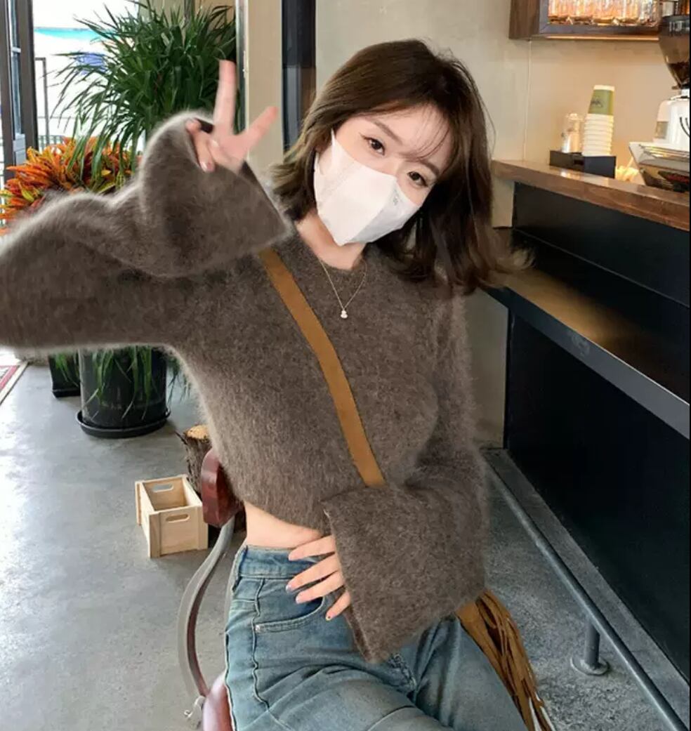 トップス ニット セーター レディース シャギーニットスカート ミニ クロップド丈 ヘソ出し 長袖 ボリューム袖 ベルスリーブ クルーネック フェミニン ふわふわ モヘア 大人可愛い シンプル カジュアル 上品 おしゃれ こなれ感 ラフ モード系 抜け感 アクティブ リラックス 無地 秋 冬 デート お出かけ イベント 女子会 休日 ライブ フェス ランチ 映画鑑賞 韓国 オルチャン コーデ 楽ちん 暖かい 普段使い 着回し モテ トレンド スタイルアップ フリーサイズ ワンサイズ コーヒー