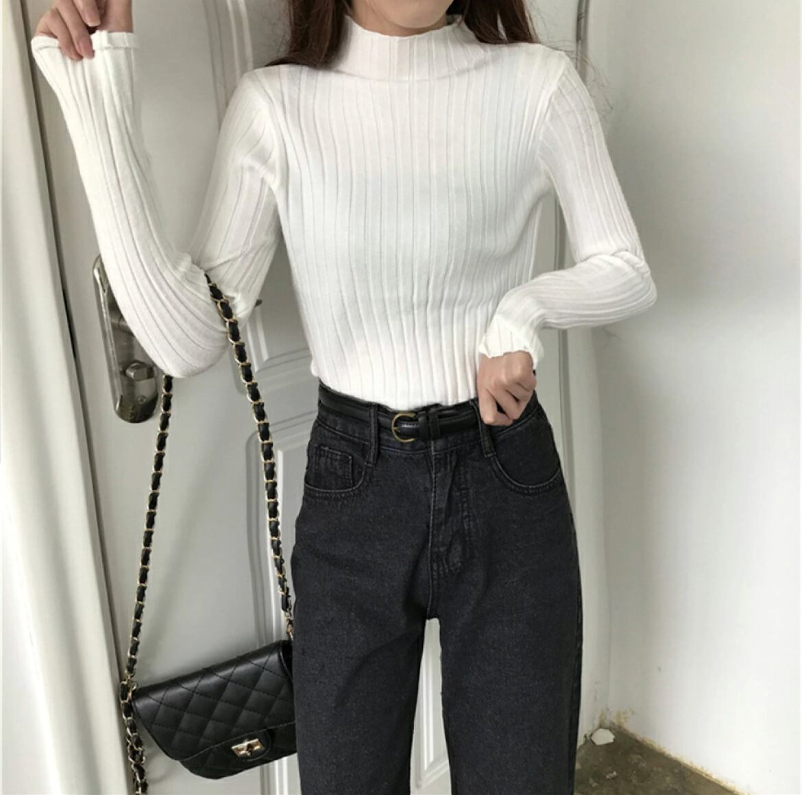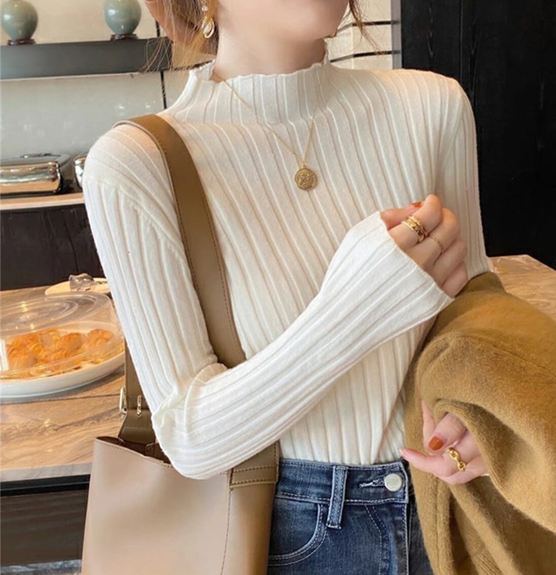 トップス ニット セーター レディース 長袖 ボトルネック タイト フェミニン リブニット 伸縮性 大人可愛い シンプル カジュアル 上品 おしゃれ こなれ感 ラフ ルーズ 存在感 抜け感 ベーシック ナチュラル リラックス 無地 秋 冬 オフィス OL 通勤 デート お出かけ イベント 女子会 休日 ショッピング カフェ ランチ 韓国 オルチャン コーデ 楽ちん 暖かい 普段使い 着回し トレンド スタイルアップ フリーサイズ ワンサイズ ホワイト ブラック グレー グリーン ライトブルー