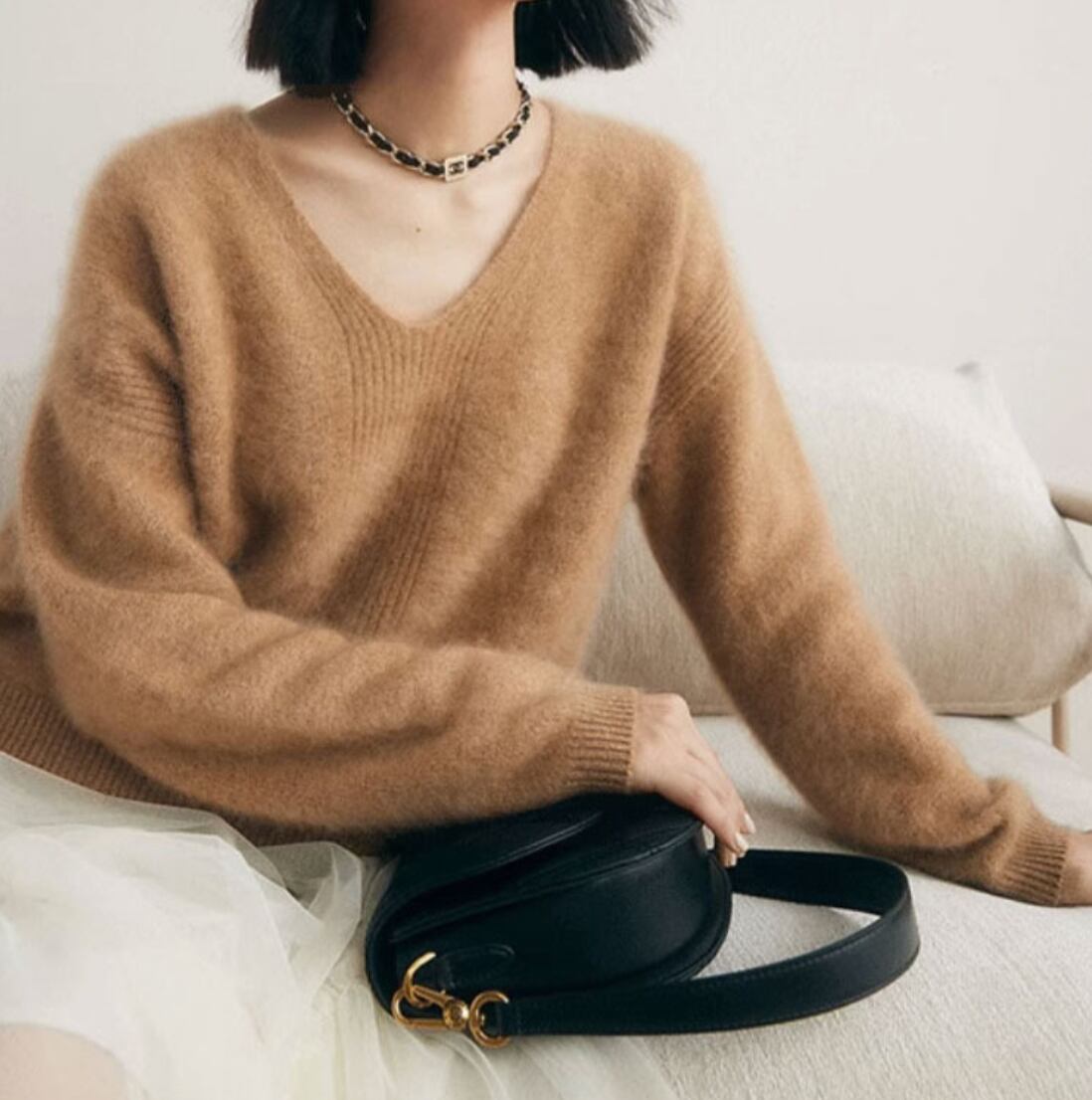トップス ニット セーター プルオーバー レディース 長袖 Vネック フェミニン ふわふわ モヘア 大人可愛い きれいめ シンプル カジュアル おしゃれ こなれ感 ラフ モード系 存在感 抜け感 アクティブ 清潔感 リラックス 着心地抜群 無地 秋 冬 オフィス OL 通勤 お出かけ イベント 女子会 休日 ショッピング カフェ ランチ 韓国 オルチャン コーデ 楽ちん 暖かい 体型カバー 普段使い 着回し トレンド スタイルアップ ゆったり フリーサイズ アプリコット ブラウン グレー レッド