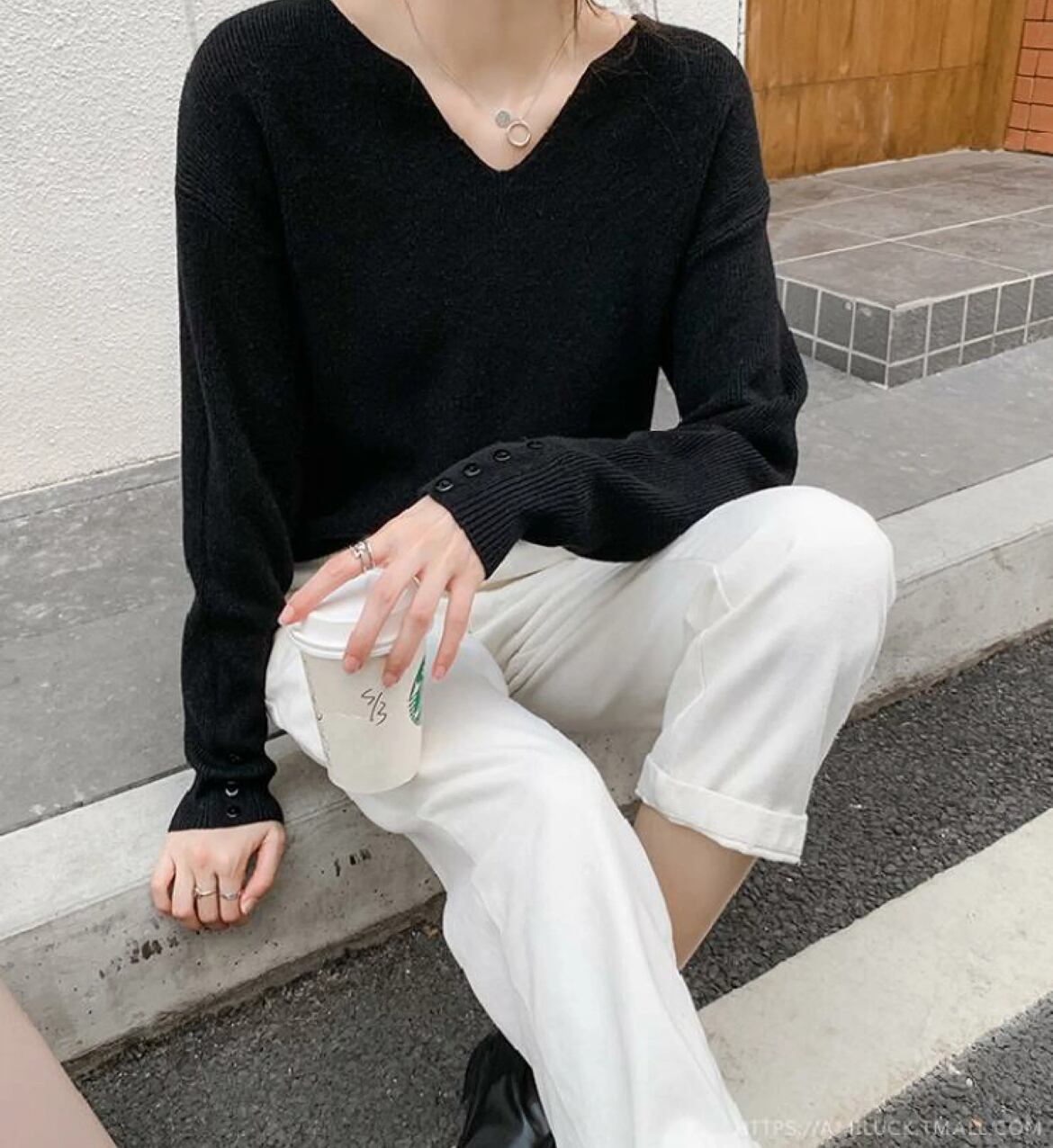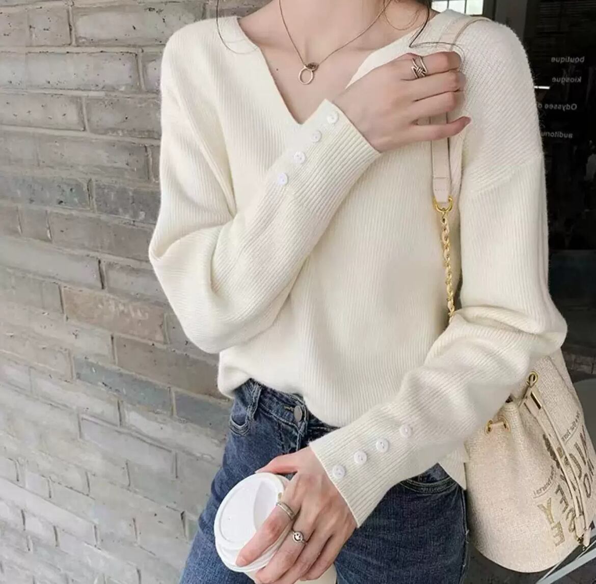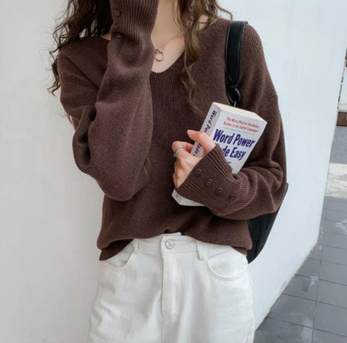 トップス ニット セーター プルオーバー レディース リブニット 長袖 Vネック ストレート フェミニン リブ ボタン 大人可愛い きれいめ シンプル カジュアル 上品 おしゃれ こなれ感 ラフ ルーズ モード系 存在感 抜け感 ナチュラル 清潔感 リラックス 無地 秋 冬 オフィス OL 通勤 デート お出かけ イベント 女子会 休日 ショッピング カフェ ランチ 韓国 オルチャン コーデ 体型カバー トレンド ゆったり フリーサイズ ワンサイズ ホワイト ブラック ブラウン ベージュ