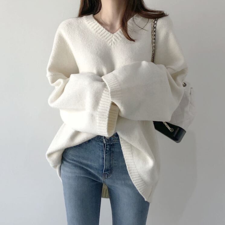 レディース トップス ニット セーター 長袖 Vネック ワイド かわいい 大人可愛い きれいめ シンプル カジュアル 上品 おしゃれ レトロ こなれ感 ラフ ガーリー ルーズ クール モード系 エレガント モダン 主役級 存在感 抜け感 都会的 ラグジュアリー クラシカル ベーシック カントリー ロマンティック ナチュラル デート お出かけ お泊まり 韓国 コーデ 楽ちん 暖かい プレゼント 体型カバー 普段使い 着回し モテ 清楚 トレンド 流行 インスタ映え 定番 ワンサイズ 白 ホワイト 黒 ブラッ