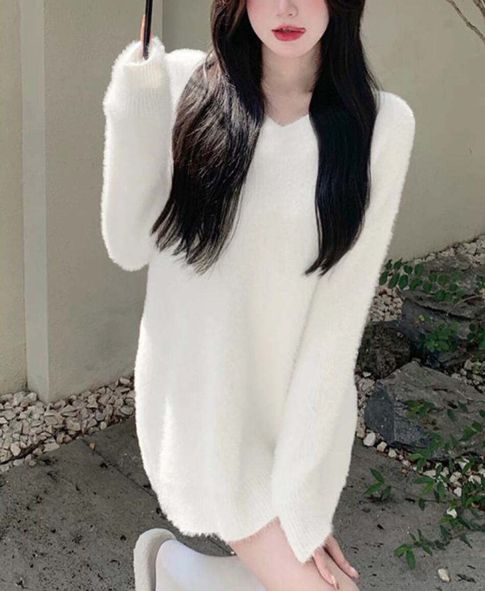 ニット セーター プルオーバー レディース 長袖 Vネック ストレート フェミニン ふわふわ 大人可愛い シンプル カジュアル 上品 おしゃれ こなれ感 ラフ ルーズ 存在感 抜け感 ナチュラル リラックス 無地 秋 冬 オフィス OL 通勤 お出かけ イベント 女子会 休日 ショッピング カフェ ランチ 韓国 オルチャン コーデ 楽ちん 暖かい 体型カバー プチプラ 普段使い モテ トレンド スタイルアップ ゆったり フリーサイズ オーバーサイズ ホワイト ブラック ブラウン ピンク ライトブルー