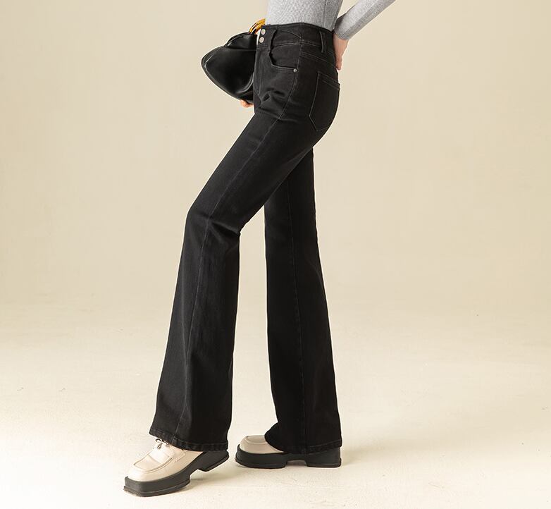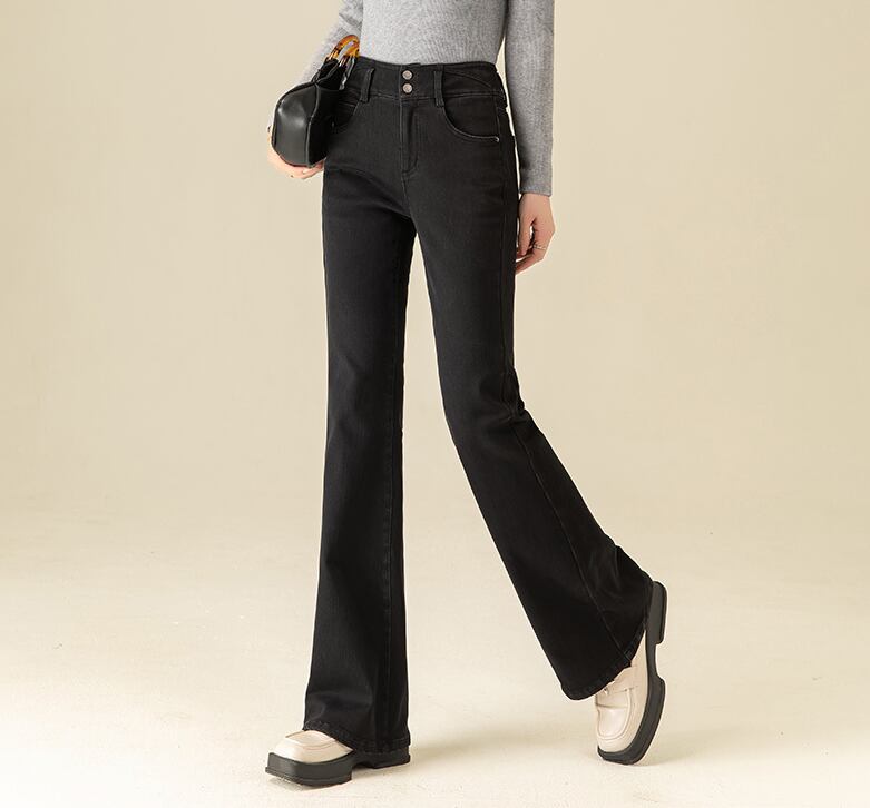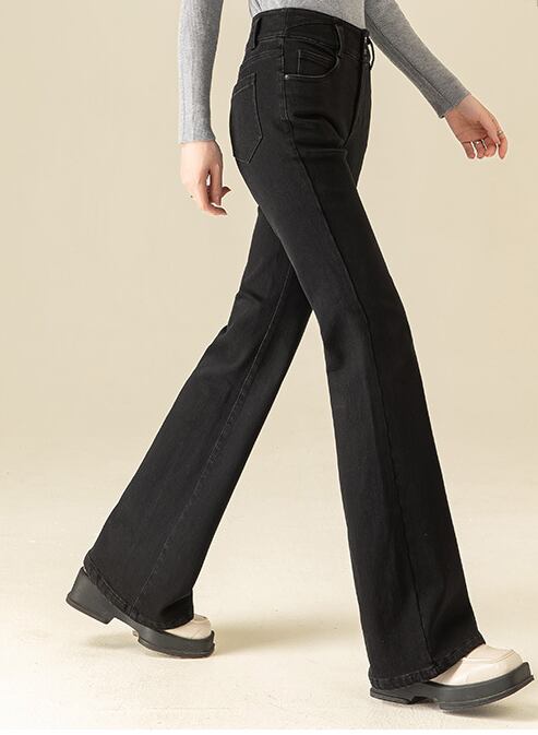 上品でありながらもカジュアルな印象を持つ、レディースストレッチパンツのご紹介です。膝下のロングフレアデザインは、脚長効果を高め、どなたでも美脚を演出します。