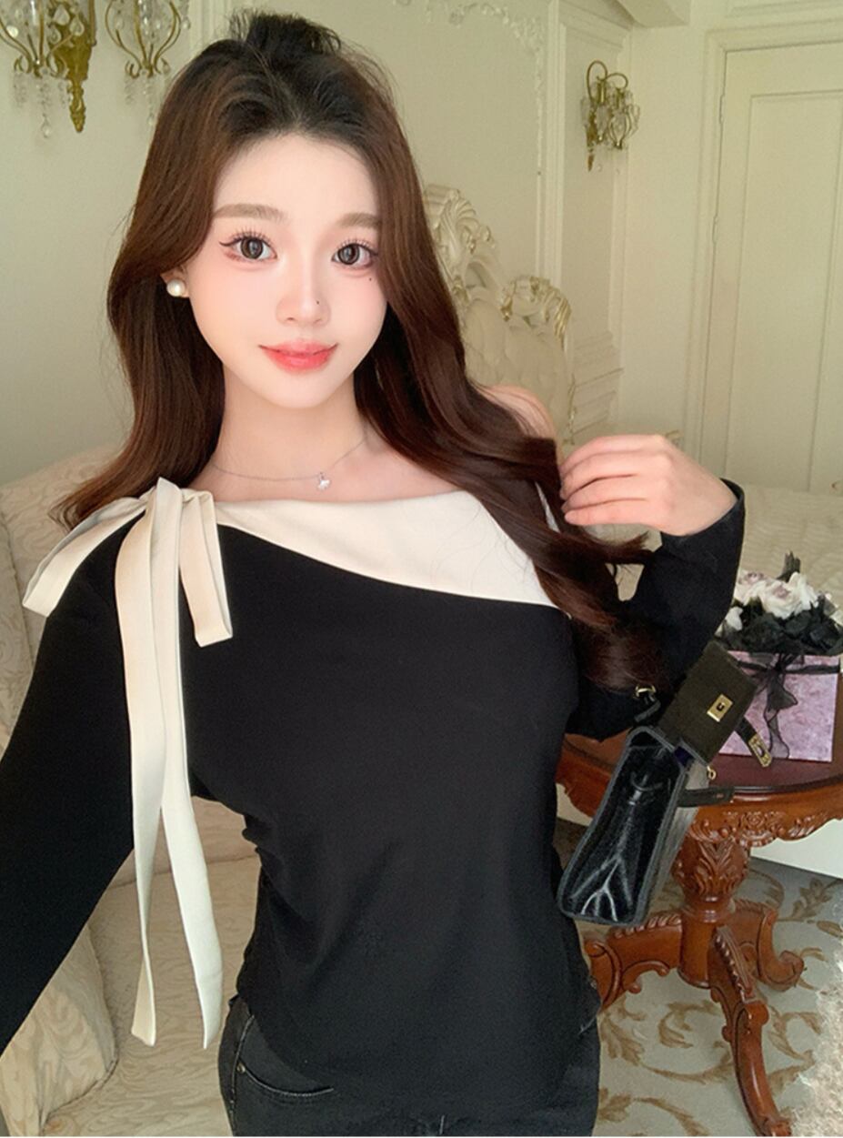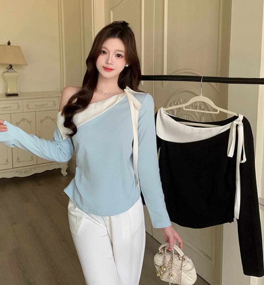 レディース トップス カットソー レディース 長袖 ワンショルダー 襟なし タイト スリム ストレート リボン 薄手 大人可愛い きれいめ シンプル カジュアル おしゃれ 個性的 クール 主役級 存在感 ロマンティック 無地 春 デート お出かけ お泊まり パーティー イベント 旅行 レストラン バカンス 高原 ホテル ガーデン ショッピング 発表会 コンサート お花見 合コン コンパ 婚活 韓国 オルチャン 楽ちん モテ 清楚 L XL 2XL 3XL 4XL 大きいサイズ ビッグ 黒 ブラック ブルー