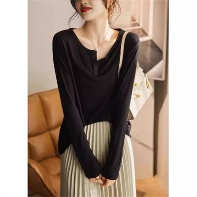 レディース トップス ロンT シャツ カットソー インナー 長袖 ドロップショルダー 萌袖 ラウンドネック キーネック スリム 細身 ストレート フェミニン リブ 透け感 伸縮性 ボタン 薄手 大人可愛い きれいめ シンプル カジュアル 上品 おしゃれ こなれ感 ラフ 抜け感 都会的 カレッジ風 学生風 ベーシック ナチュラル リラックス 軽やか 通気性 爽やか 無地 春 秋 会議 MTG ミーティング オフィス ビジネス OL 通勤 学生 通学 デート お出かけ リゾート 旅行 海 レストラン ビーチ