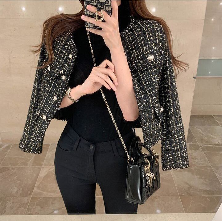ジャケット レディース 羽織 長袖 ラウンドネック 襟なし ノーカラー スリム 細身 ストレート スマート フェミニン 前開き ツイード コンサバ ボタン かわいい 大人可愛い 上品 おしゃれ こなれ感 ガーリー エレガント 存在感 キュート 都会的 ラグジュアリー クラシカル ベーシック 格子柄 春 秋 入学式 入園式 卒業式 卒園式 授業参観 オフィス OL 通勤 レストラン ショッピング ランチ 韓国 オルチャン コーデ 脚長 普段使い 着回し モテ 清楚 定番 フリーサイズ ホワイト ブラック